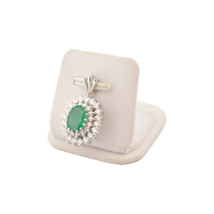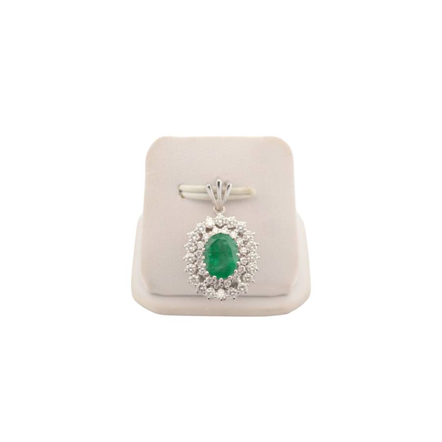 PANDANT DIN AUR ALB 14K CU DIAMANTE SI SMARALD_CSG131