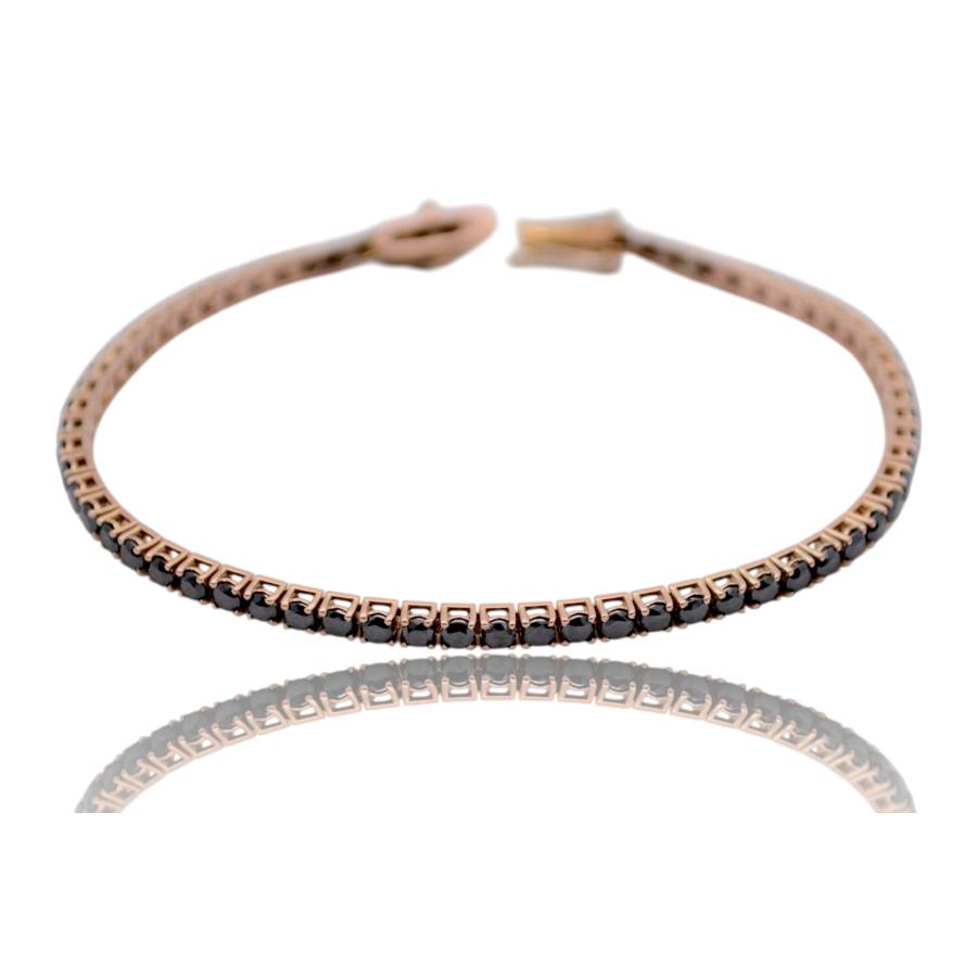 BRATARA TENIS DIN AUR ROZ 18K CU DIAMANTE NEGRE NATURALE