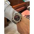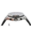 Audemars Piguet Royal Oak Offshore Alinghi Polaris (ref. 26040ST.OO.D002CA.01) este un ceas distinctiv și de colecție, creat pentru a celebra parteneriatul dintre Audemars Piguet și echipa elvețiană de navigație Alinghi, câștigătoare a Cupei Americii. Introdus la mijlocul anilor 2000 ca o ediție limitată de aproximativ 2.000 de exemplare, ceasul îmbină estetica îndrăzneață a colecției Royal Oak Offshore cu funcții specializate de cronometrare a regatelor, concepute pentru navigația de competiție. Ceasul prezintă arhitectura inconfundabilă Royal Oak Offshore, caracterizată prin carcasa robustă din oțel inoxidabil și bezelul octogonal iconic fixat cu șuruburi expuse. Cu un diametru de aproximativ 44 mm, carcasa oferă o prezență puternică la încheietura mâinii, menținând în același timp caracterul sportiv tipic liniei Offshore.