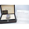Acest ceas face parte dintr-o colectie atent selectionata, verificata si certificata de echipa noastra de experti. Ceasornicarii nostri profesionisti s-au asigurat ca este in stare excelenta de functionare, trecand teste complete, inclusiv teste de rezistenta la apa si teste de functionalitate. Sticla prezinta o mica ciobitura pe margine. Ceasul a fost polishat profesional pentru a-i reimprospata aspectul si a-i oferi un aspect uimitor pastrand in acelasi timp caracteristicile originale.