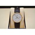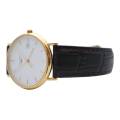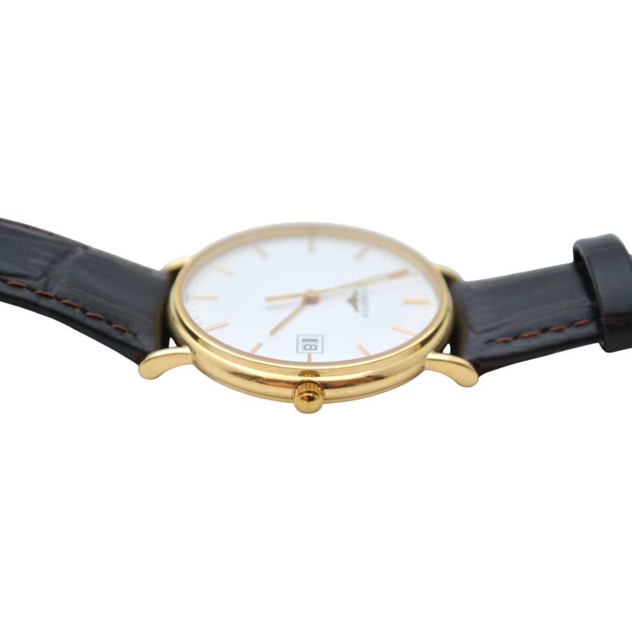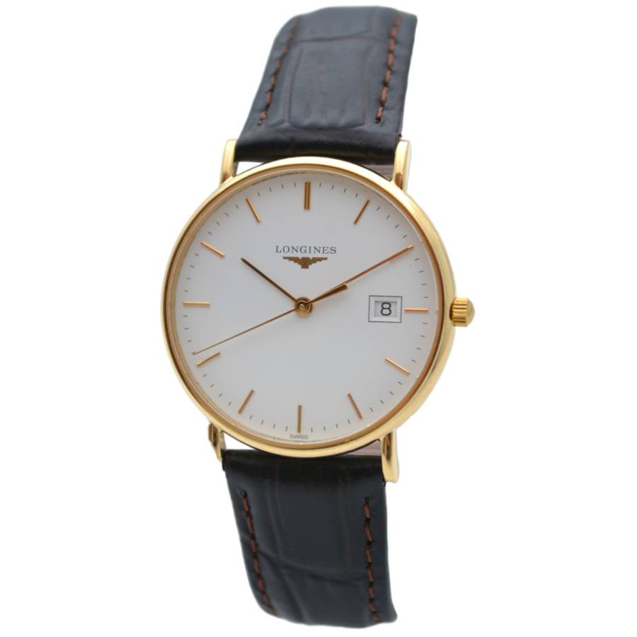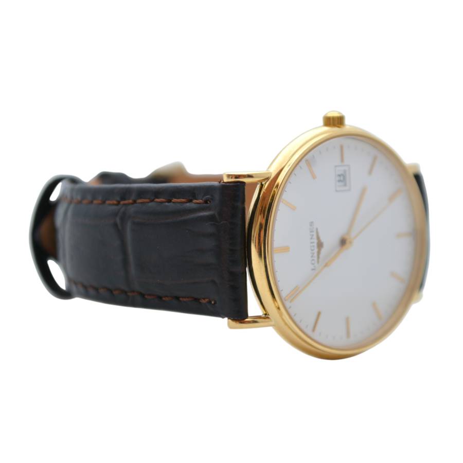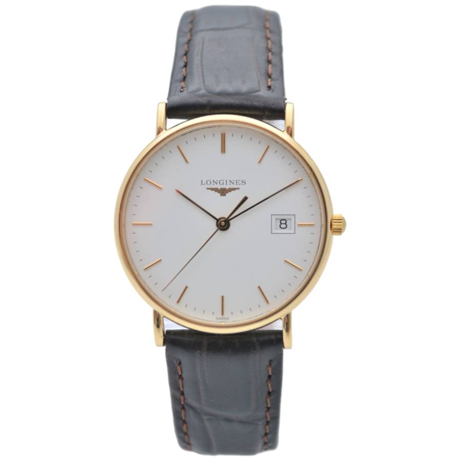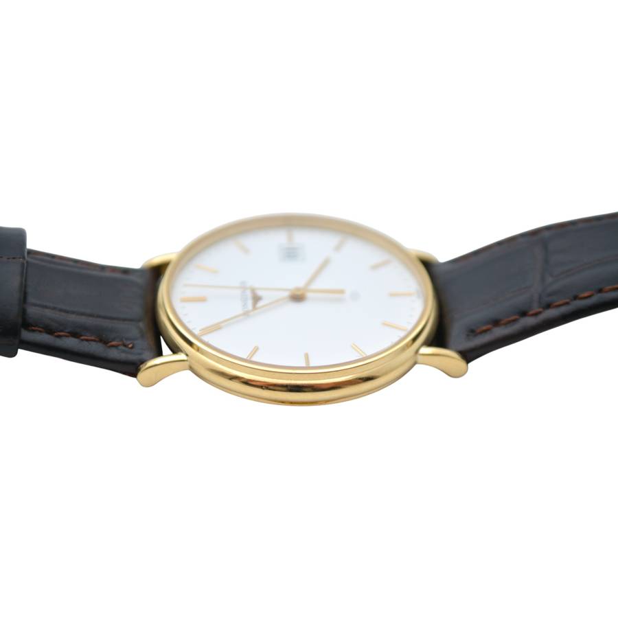 Ceasul Longines Le Grande Classique este o expresie rafinată a eleganței atemporale - o odă adusă luxului discret și orologeriei clasice. Conceput pentru cei care apreciază puritatea formei și stilul durabil, acest model surprinde însăși esența moștenirii Longines. Carcasa sa rotundă ultra-subțire, realizată din aur galben cald, se sprijină fără efort pe încheietura mâinii, oferind o siluetă delicată și încrezătoare. Cadranul alb imaculat este un studiu de sobrietate și echilibru, împodobit cu cifre romane negre subțiri care evocă sofisticarea tradițională. Ace subțiri alunecă grațios pe cadran, consolidând caracterul calm și stăpânit al ceasului.