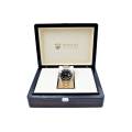 Acest ceas face parte dintr-o colectie atent selectionata, verificata si certificata de echipa noastra de experti. Ceasornicarii nostri profesionisti s-au asigurat ca este in stare excelenta de functionare, trecand teste complete, inclusiv teste de rezistenta la apa si teste de functionalitate. Ceasul a fost polishat profesional pentru a-i reimprospata aspectul si a-i oferi un aspect uimitor, ca nou, pastrand in acelasi timp caracteristicile originale. Sticla de safir prezinta o usoara zgarietura.