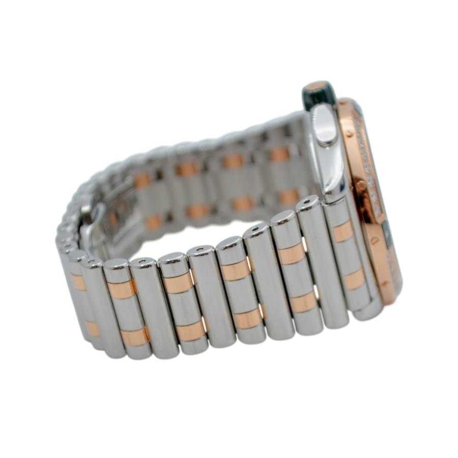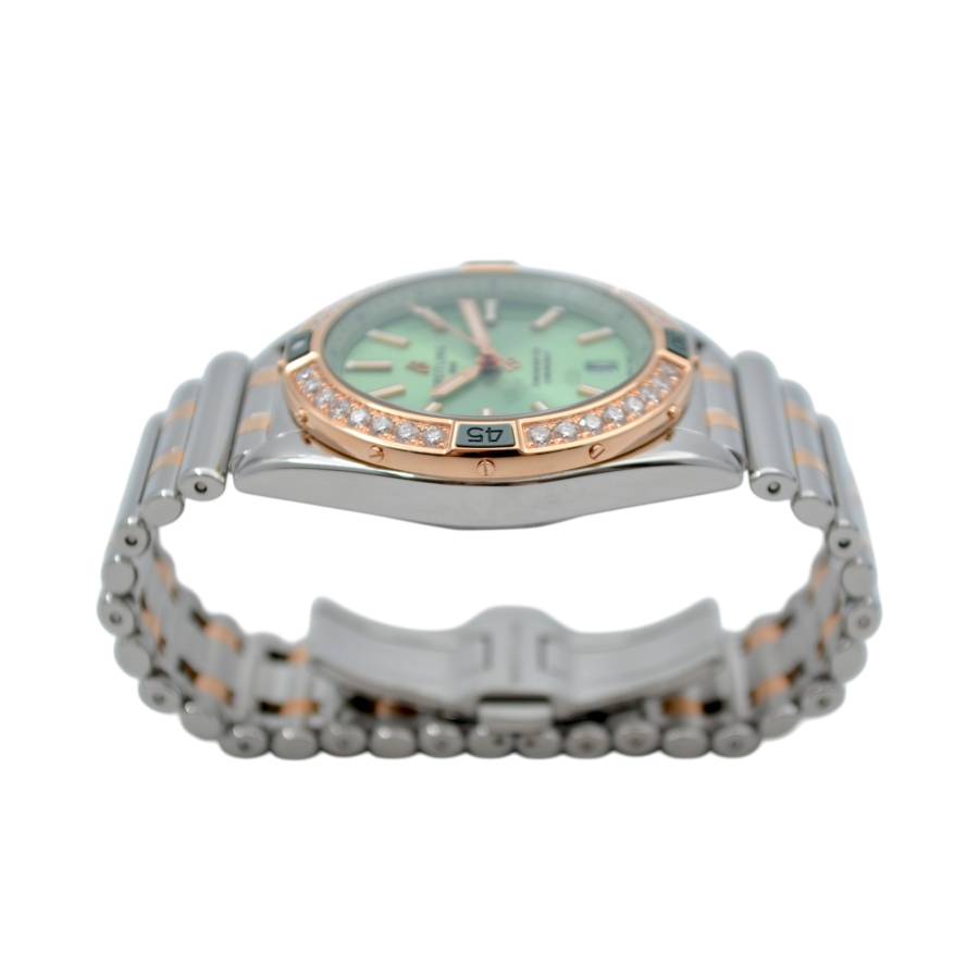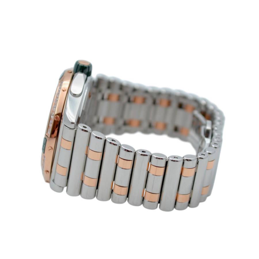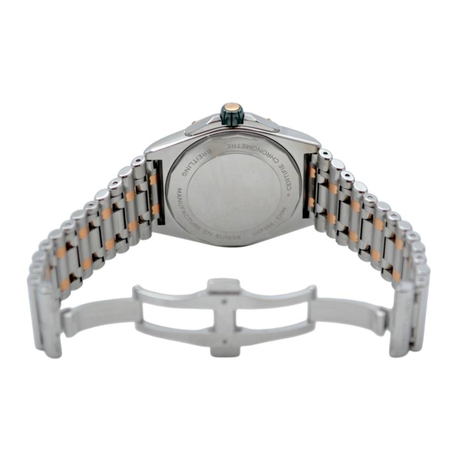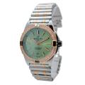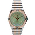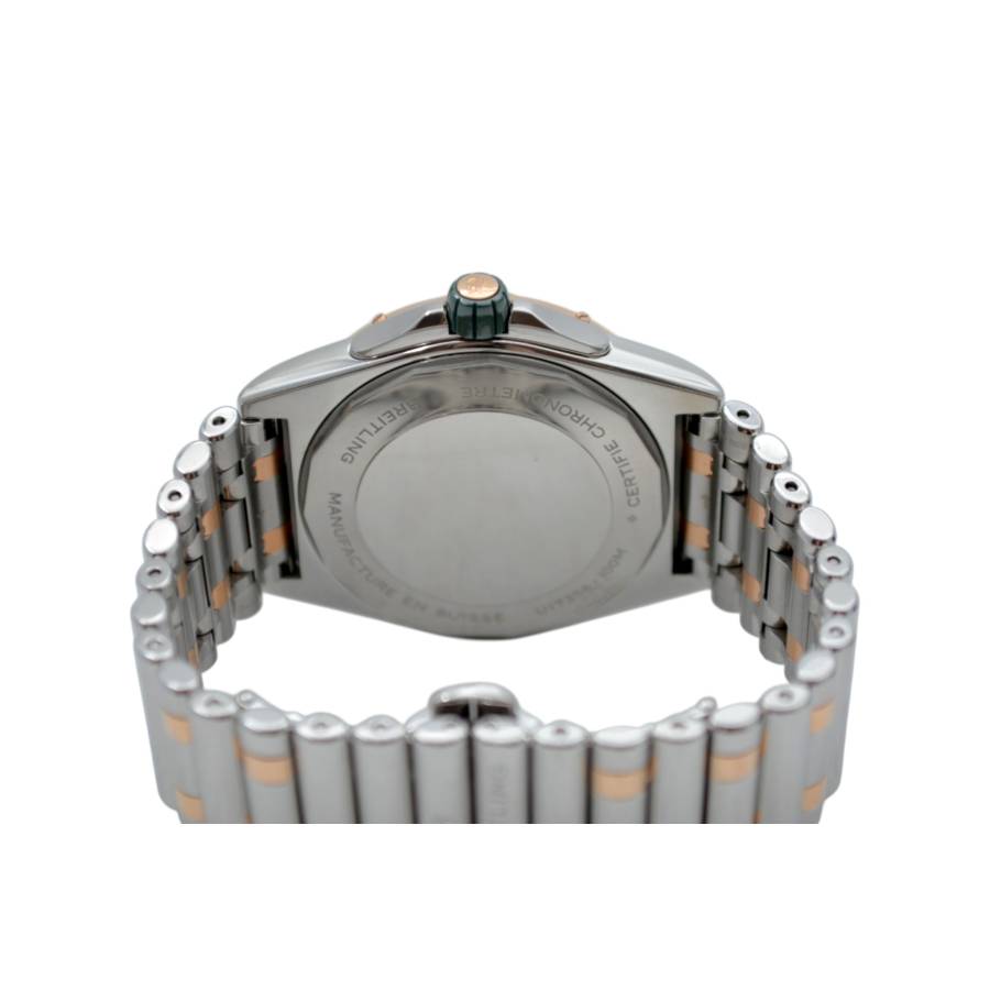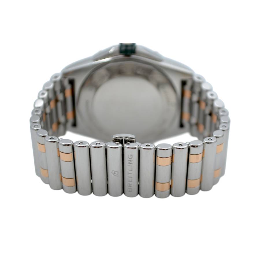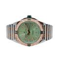 La prima vedere, cadranul verde-mentă radiant pare proaspăt, vibrant, aproape viu - o culoare neașteptată care transformă ceasul într-o adevărată piesă emblematică. Înconjurându-l, o lunetă încrustată cu diamante cultivate în laborator strălucește cu o intensitate rafinată, perfect echilibrată de căldura aurului roșu de 18k și rezistența oțelului inoxidabil. Această dualitate - lux și robustețe - este în centrul Breitling. Brățara Rouleaux, unul dintre cele mai emblematice elemente din linia Chronomat, învăluie încheietura mâinii cu un confort fluid și o identitate inconfundabilă.