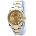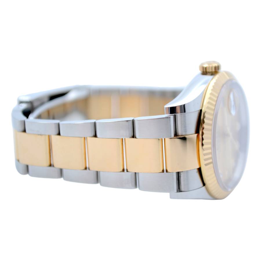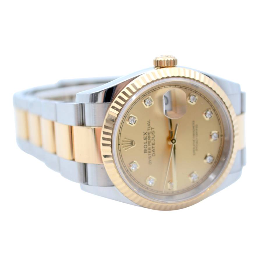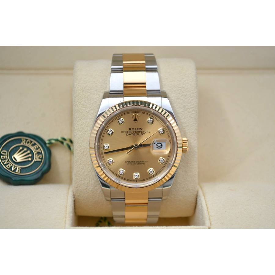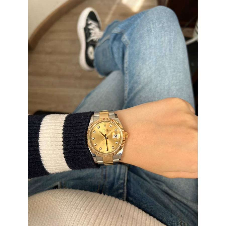 Rolex Datejust 126233 Champagne Diamond Dial este o expresie atemporală a rafinamentului, unde moștenirea orologeriei clasice întâlnește luxul contemporan. Creat cu precizia și eleganța inconfundabilă care definesc Rolex, acest ceas emblematic captează atenția cu cadranul său cald de culoarea șampaniei și cu indicii orari cu diamante strălucitoare. Încapsulat într-o carcasă Oyster de 36 mm, realizată dintr-un amestec armonios de oțel Oyster și aur galben de 18k, ceasul reflectă estetica bicoloră caracteristică, care a devenit sinonimă cu colecția Datejust.