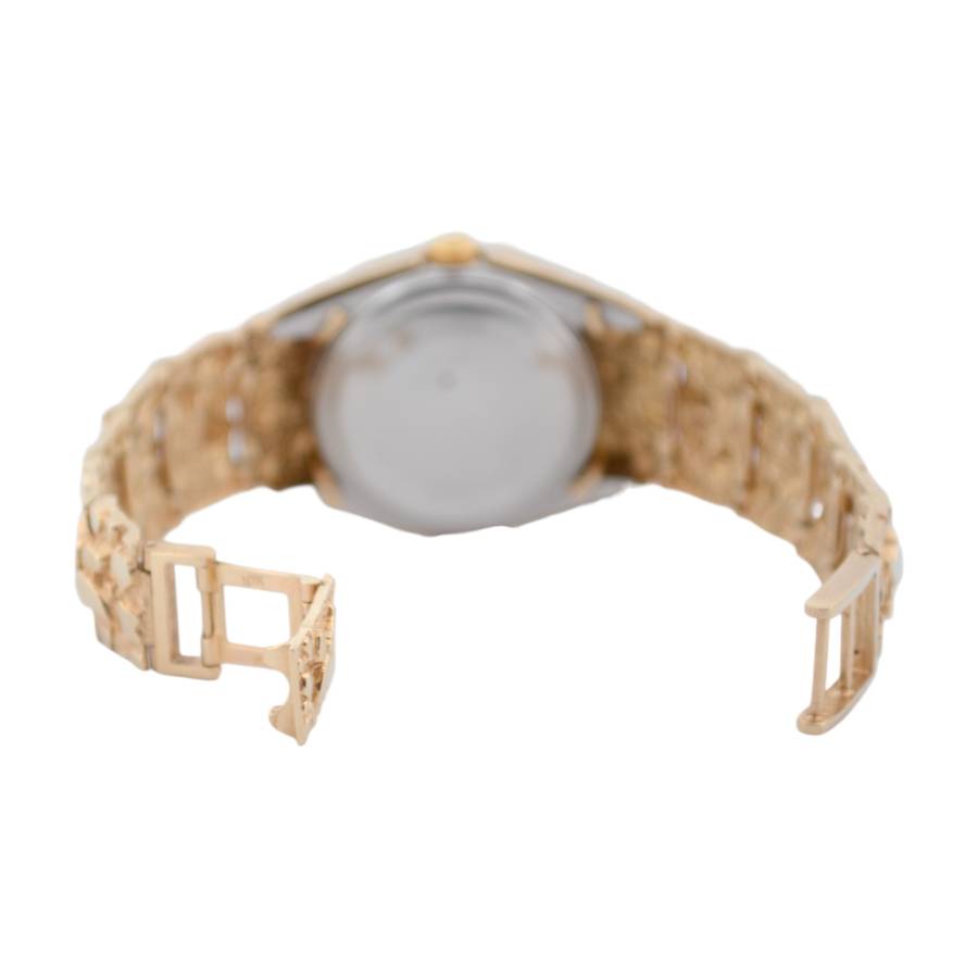 Ceasul are montata o bratara metalica (non-original) potrivita pentru incheieturi de pana la .... cm. Daca incheietura ta este mai mica, bratara poate fi ajustata. Te rugam sa retii ca nu sunt incluse zale suplimentare, dar acestea pot fi comandate separat. Catarama montata in prezent pe curea nu este cea originala furnizata impreuna cu ceasul.