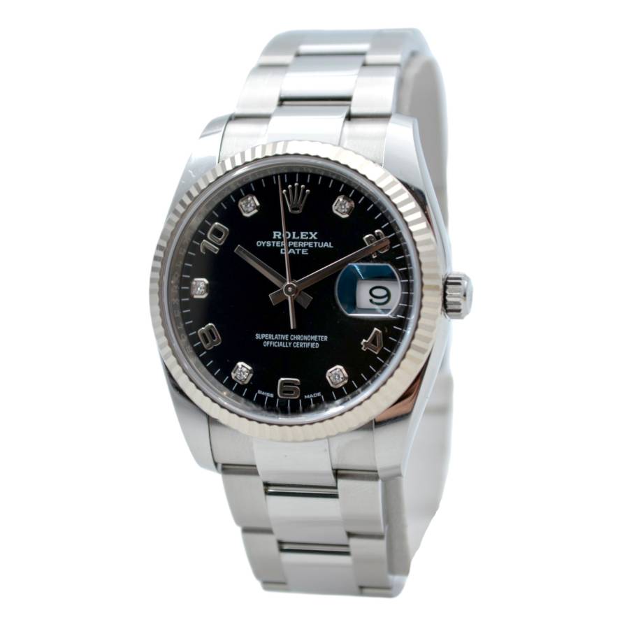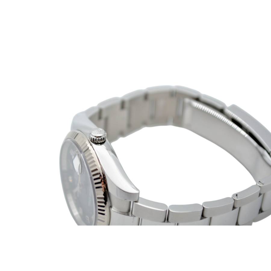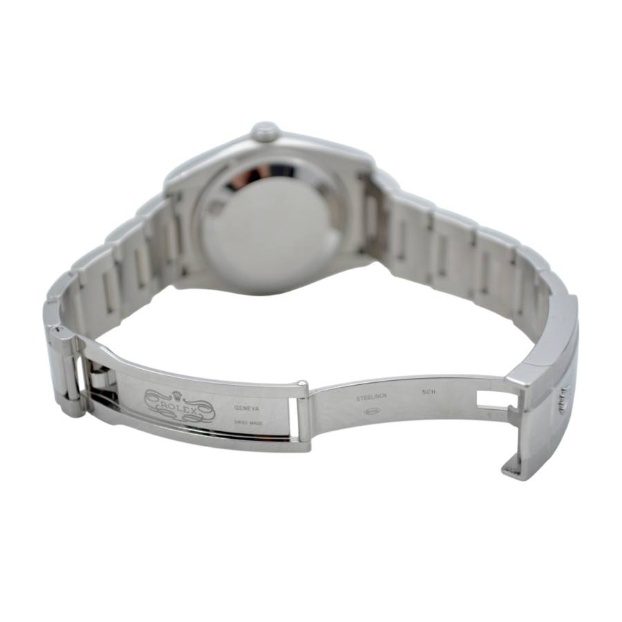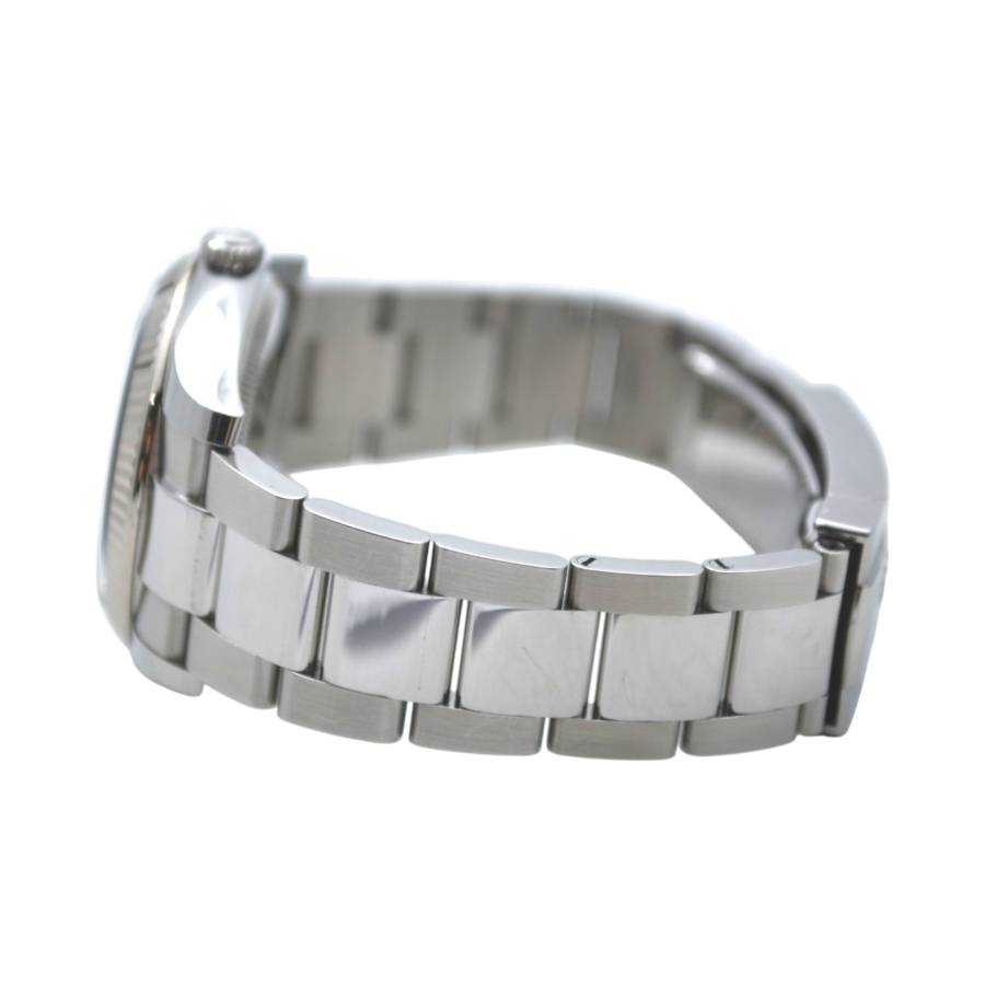 Fabricat din oțel inoxidabil cu o lunetă canelată din aur alb de 18 carate, Oyster Perpetual Date Ref. 115234 întruchipează un lux subtil care nu atrage niciodată atenția, dar nu trece niciodată neobservat. Luneta canelată, una dintre cele mai recunoscute semnături de design Rolex, captează lumina la fiecare mișcare, adăugând profunzime și caracter siluetei clasice a ceasului. Carcasa sa Oyster de 34 mm este perfect echilibrată - elegantă la încheietura mâinii, dar robustă în construcție. Construită conform standardelor fără compromisuri Rolex, carcasa oferă o durabilitate excepțională și rezistență la apă de până la 100 de metri, protejată de faimoasa coroană înșurubată și de arhitectura solidă a carcasei.