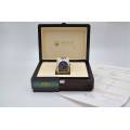 Acest ceas face parte dintr-o colectie atent selectionata, verificata si certificata de echipa noastra de experti. Ceasornicarii nostri profesionisti s-au asigurat ca este in stare excelenta de functionare, trecand teste complete, inclusiv teste de rezistenta la apa si teste de functionalitate. Ceasul prezinta semne subtile de uzura si zgarieturi minore care reflecta istoria si caracterul sau.
