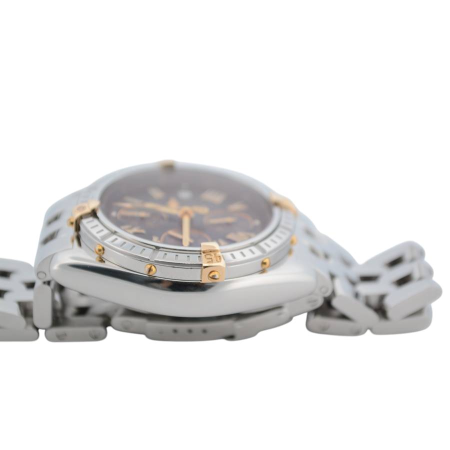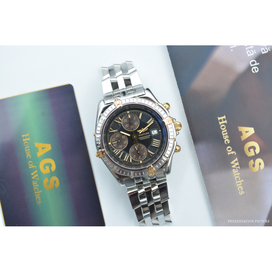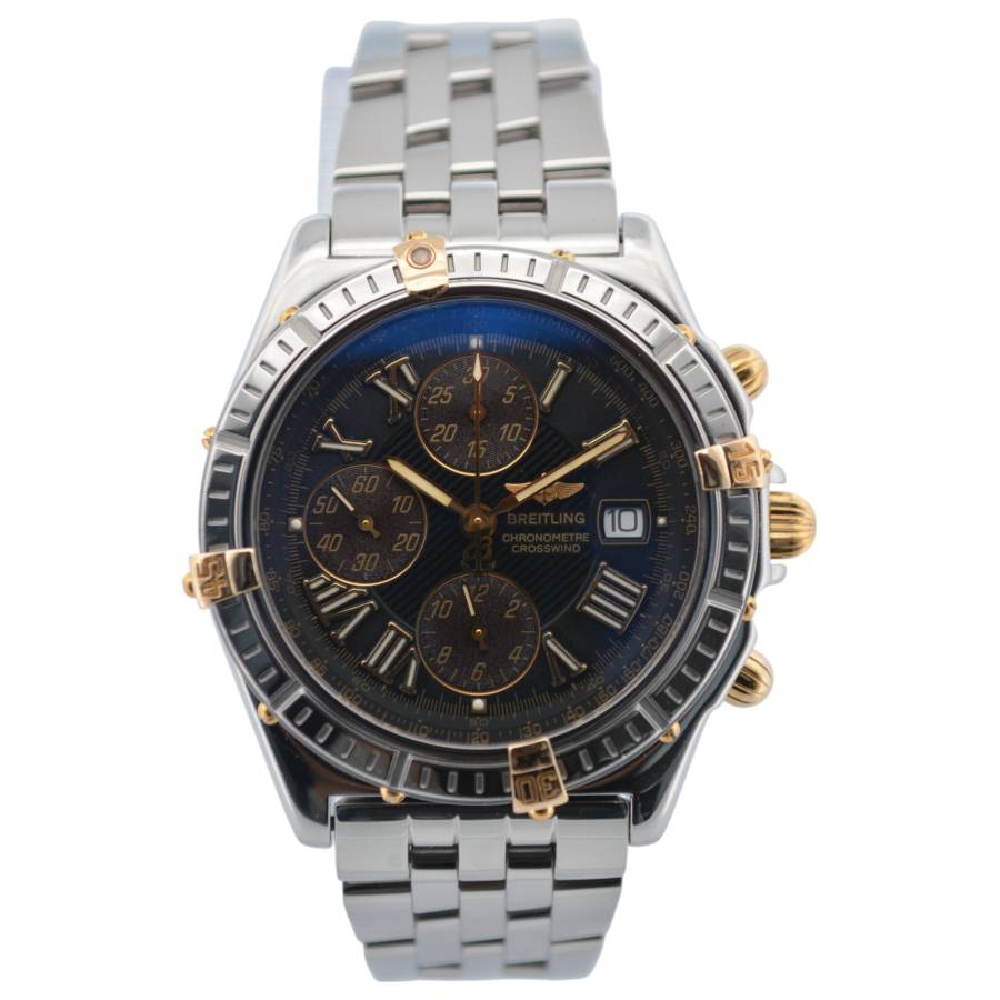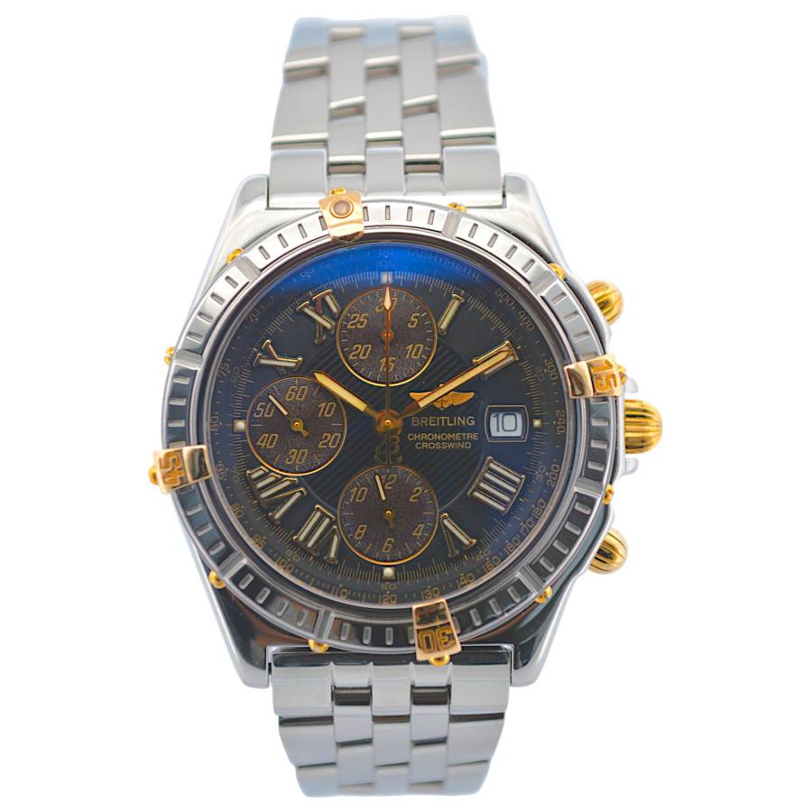 Breitling Crosswind Chronograph 43 Ref: B13355 este o întruchipare izbitoare a preciziei și eleganței, concepută pentru pasionații de ceasuri exigenți, care solicită atât stil, cât și funcționalitate. Acest ceas are o carcasă îndrăzneață din oțel inoxidabil de 43 mm, care emană încredere și rezistență, completată de designul său elegant și de înaltă performanță. Atractia rafinata, dar robusta, este sporita si mai mult de o rama rotativa, care ofera atat caracter practic, cat si un contrast atrăgător cu suprafețele lustruite ale ceasului.