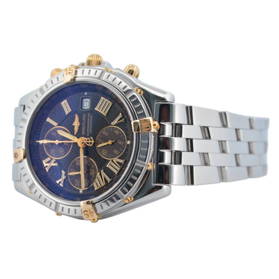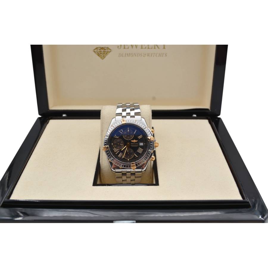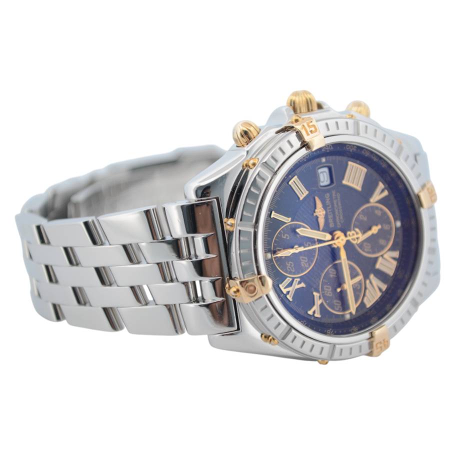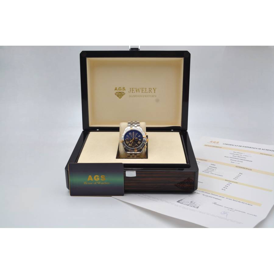 Breitling Crosswind Chronograph 43 Ref: B13355 este o întruchipare izbitoare a preciziei și eleganței, concepută pentru pasionații de ceasuri exigenți, care solicită atât stil, cât și funcționalitate. Acest ceas are o carcasă îndrăzneață din oțel inoxidabil de 43 mm, care emană încredere și rezistență, completată de designul său elegant și de înaltă performanță. Atractia rafinata, dar robusta, este sporita si mai mult de o rama rotativa, care ofera atat caracter practic, cat si un contrast atrăgător cu suprafețele lustruite ale ceasului.