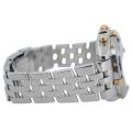 Ceasul are montata o bratara metalica potrivita pentru incheieturi de pana la 19 cm. Daca incheietura ta este mai mica, bratara poate fi ajustata. Te rugam sa retii ca nu sunt incluse zale suplimentare, dar acestea pot fi comandate separat.