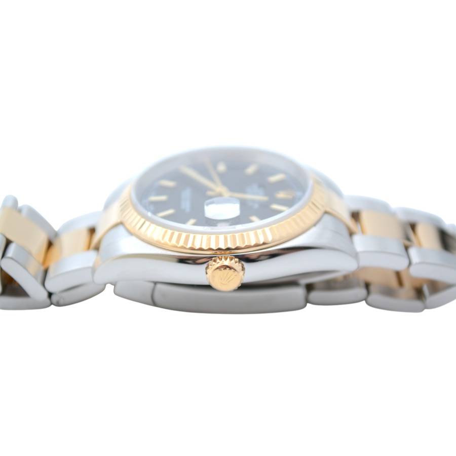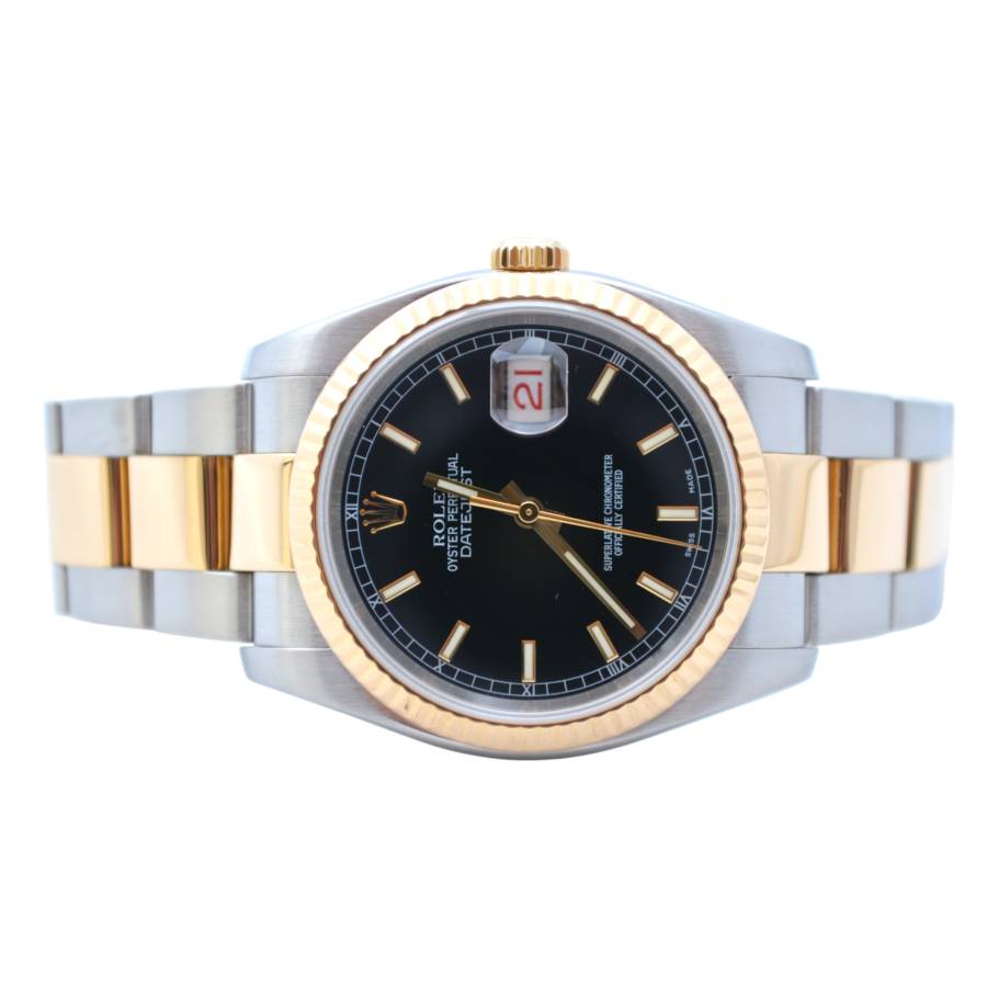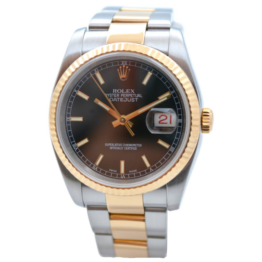 Rolex Datejust Roulette Ref. 116233 este o celebrare a eleganței clasice, infuzată cu detalii rare și jucăușe, care captivează adevărații cunoscători. Recunoscută instantaneu, dar subtil distinctivă, această referință întruchipează capacitatea Rolex de a îmbina tradiția cu individualitatea discretă. Găzduit într-o carcasă Oyster de 36 mm, perfect proporționată, ceasul este realizat dintr-o combinație armonioasă de oțel Oyster și aur galben de 18 carate, o construcție emblematică Rolesor care radiază căldură, prestigiu și durabilitate. Luneta canelată iconică, tăiată din aur masiv, captează lumina la fiecare mișcare, încadrând cadranul în stilul Rolex inconfundabil.