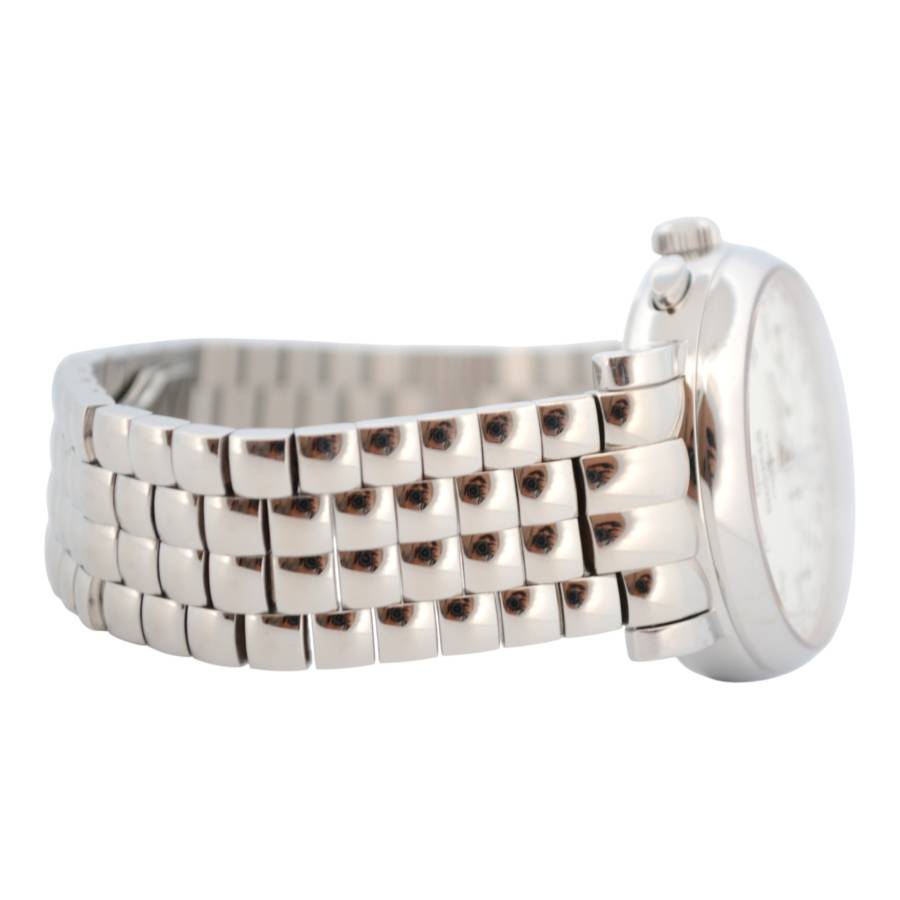 Ceasul are montata o bratara metalica potrivita pentru incheieturi de pana la 19 cm. Daca incheietura ta este mai mica, bratara poate fi ajustata. Te rugam sa retii ca nu sunt incluse zale suplimentare, dar acestea pot fi comandate separat.