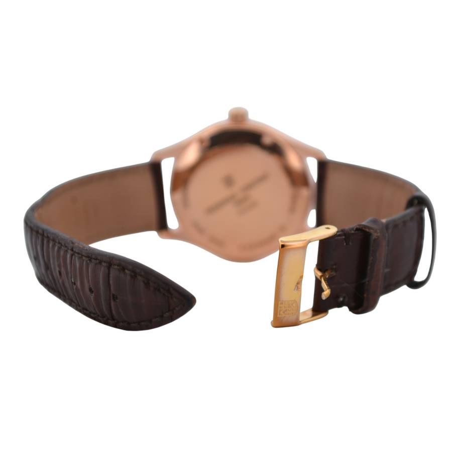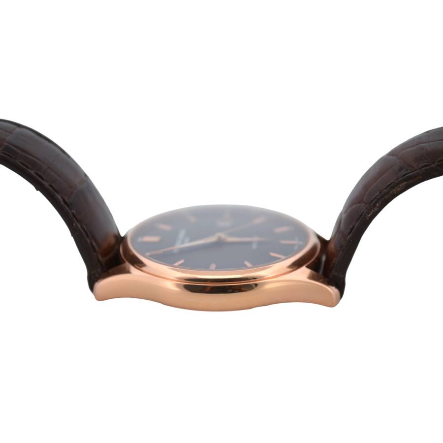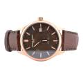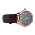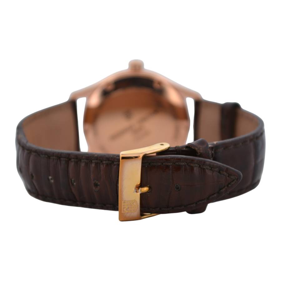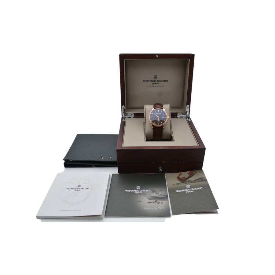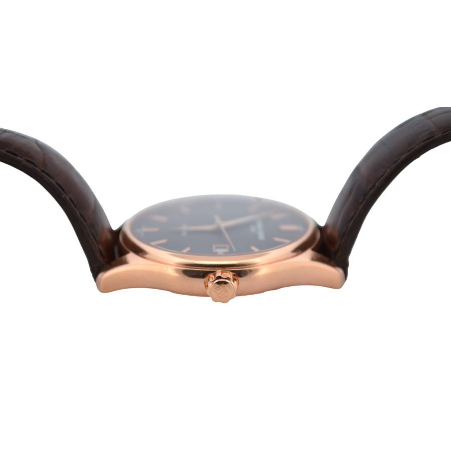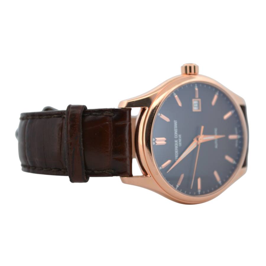 Ceasul Frédérique Constant Index Classics Ref. FC-303C5B4 este o întruchipare atemporală a eleganței elvețiene, creată pentru cei care apreciază sofisticarea discretă. Carcasa sa din oțel inoxidabil lustruit, de 40 mm, cu strat PVD auriu-roz, radiază căldură și rafinament, completate perfect de o curea bogată din piele maro închis, cu cusături contrastante, evocând tradițiile orologeriei clasice. Cadranul maro, accentuat de un finisaj sunray, oferă un aspect armonios cu indecși placați cu aur-roz aplicați și ace în stil dauphine, asigurând o lizibilitate fără efort. O apertură discretă pentru dată, la ora 3, adaugă funcționalitate practică fără a perturba simetria elegantă a cadranului.