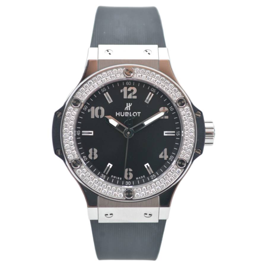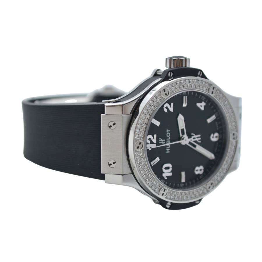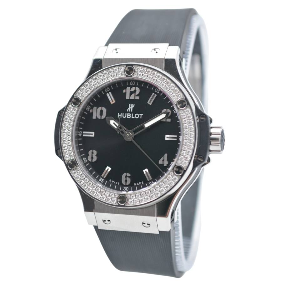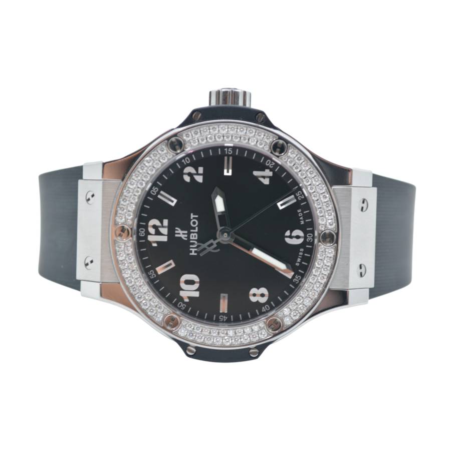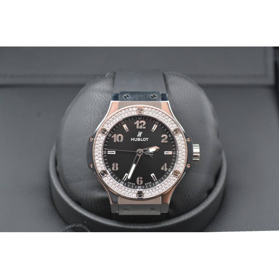 HUBLOT BIG BANG 38 BLACK DIAL DIAMONDS STAINLESS STEEL QUARTZ REF: 361.SX.1270.RX.1104