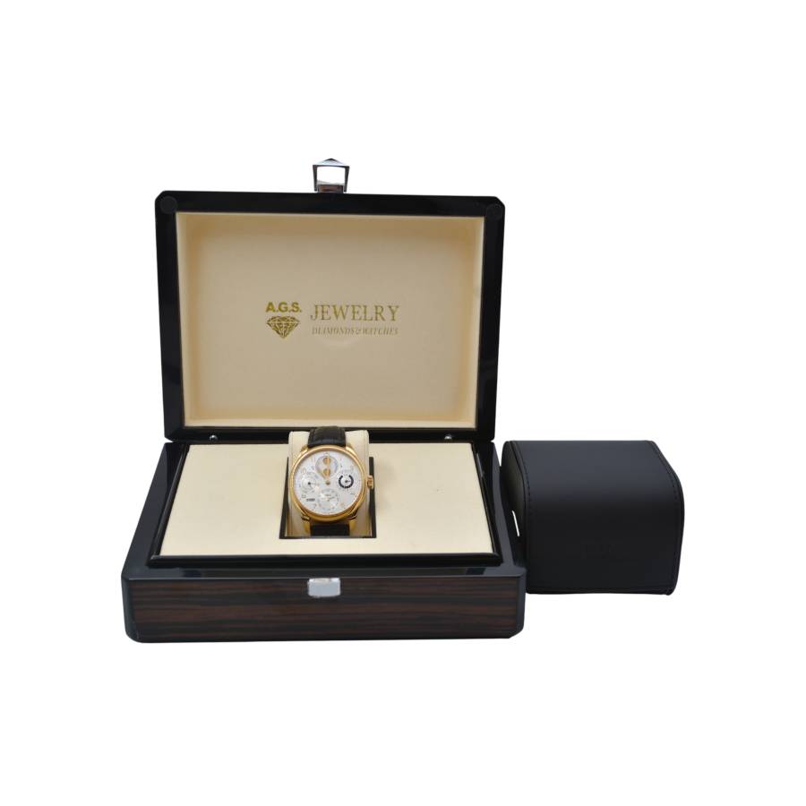 Ceasul IWC Portugieser Perpetual Calendar Ref. IW502106 este una dintre acele creații rare în care măiestria mecanică întâlnește astronomia poetică. Mecanismul calendarului perpetuu - proiectat ingenios de Kurt Klaus pentru IWC Schaffhausen - recunoaște automat duratele variabile ale lunilor și chiar ale anilor bisecți. Odată setat, nu va mai necesita corecție până în anul 2100. Toate indicațiile - data, ziua, luna, anul în patru cifre și faza maiestuoasă a lunii - sunt sincronizate doar prin intermediul coroanei, o realizare tehnică ce reflectă filosofia IWC de eleganță funcțională.