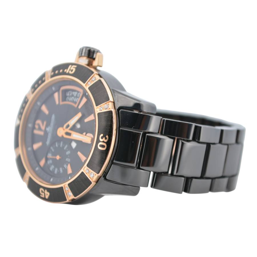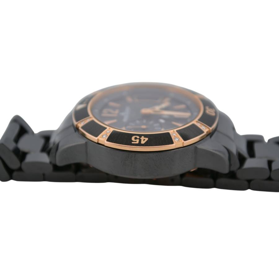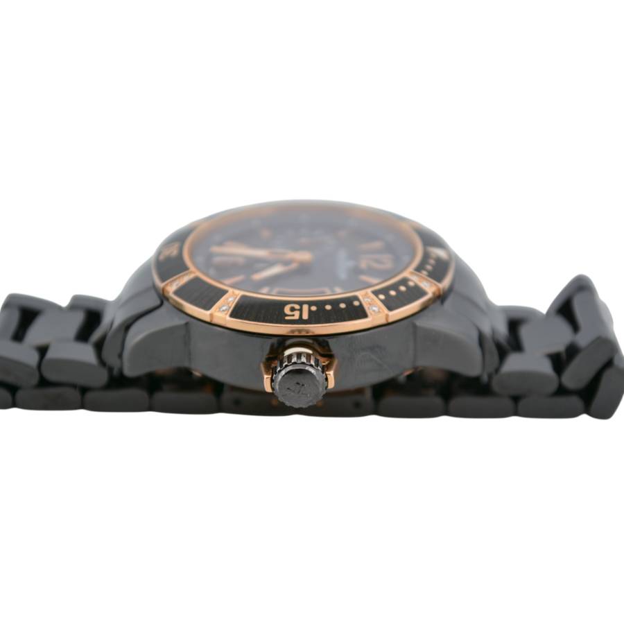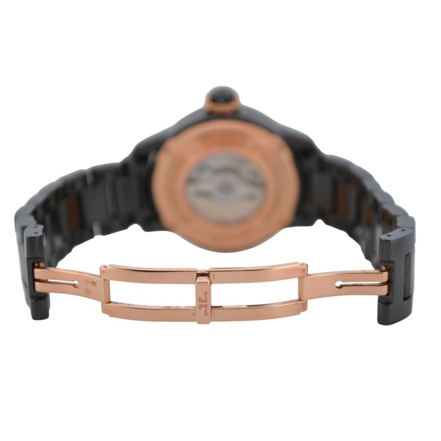 Acest ceas face parte dintr-o colectie atent selectionata, verificata si certificata de echipa noastra de experti. Ceasornicarii nostri profesionisti s-au asigurat ca este in stare excelenta de functionare, trecand teste complete, inclusiv teste de rezistenta la apa si teste de functionalitate. Capacul din spatele carcasei (fabricat din aur roz) a fost polishat profesional pentru a-i reimprospata aspectul si a-i oferi un aspect uimitor, ca nou, pastrand in acelasi timp caracteristicile originale. Pe spatele carcasei se afla o mica crapatura.