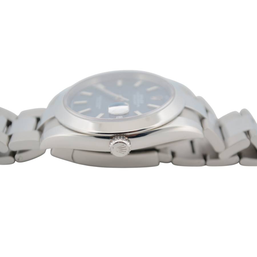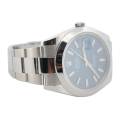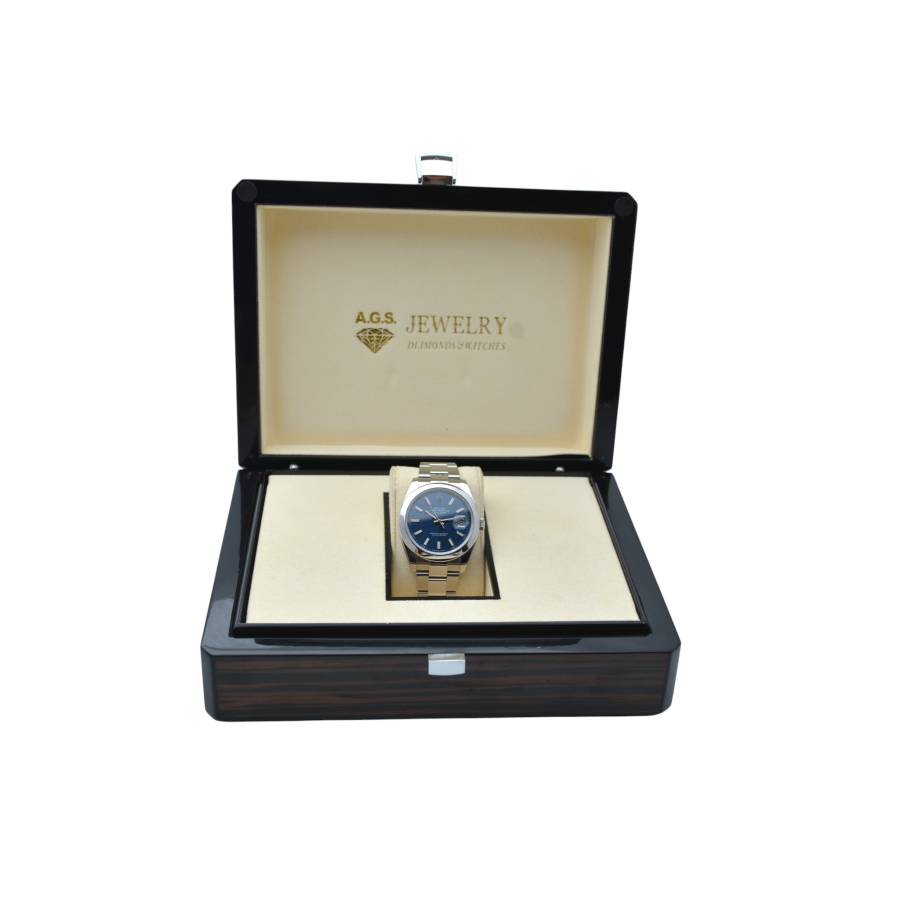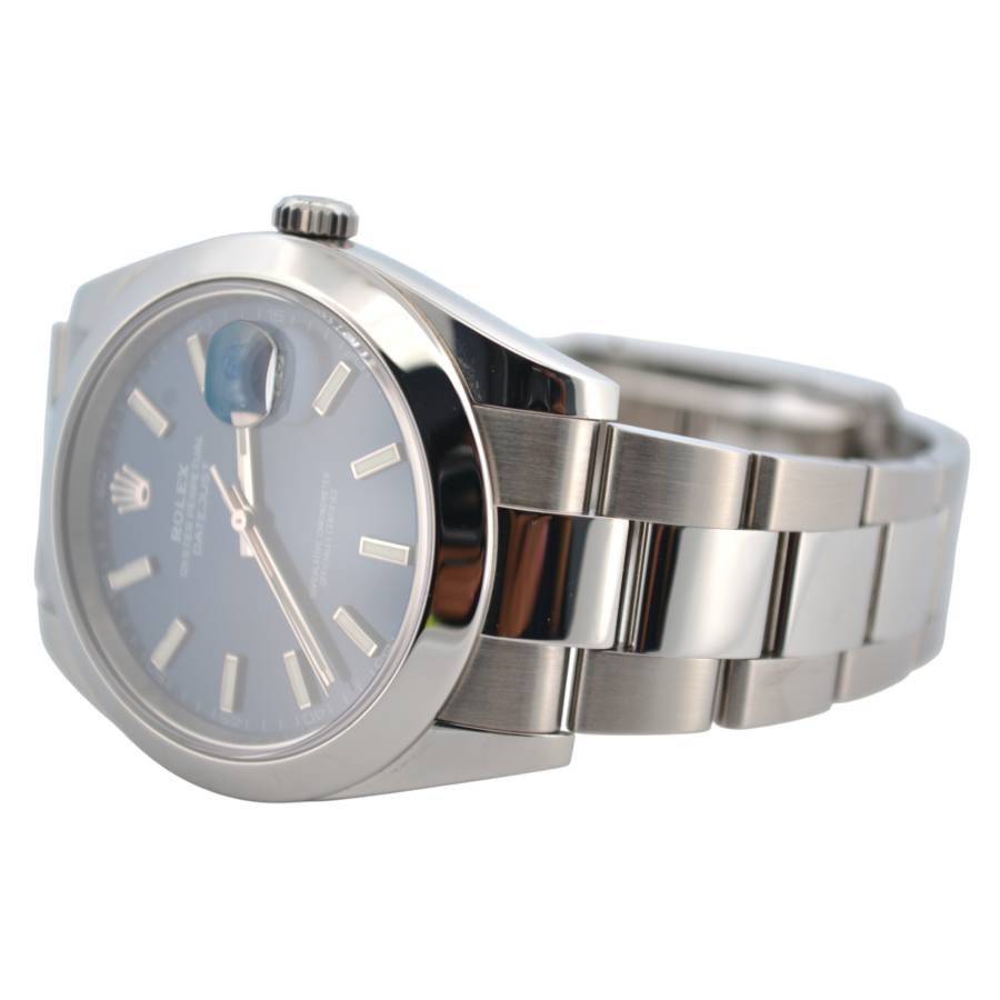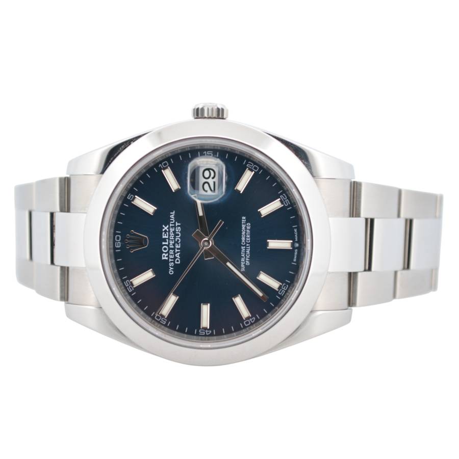 Rolex Datejust 41 Ref. 126300 întruchipează echilibrul perfect între sofisticarea clasică și rafinamentul modern. Fabricată din robust oțel Oystersteel, carcasa sa elegantă de 41 mm radiază o eleganță discretă, asigurând în același timp o durabilitate excepțională. Luneta netedă și lustruită accentuează caracterul contemporan al ceasului, oferind o estetică versatilă, potrivită atât pentru ocazii formale, cât și pentru cele casual.