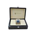 Acest ceas face parte dintr-o colectie atent selectionata, verificata si certificata de echipa noastra de experti. Ceasornicarii nostri profesionisti s-au asigurat ca este in stare excelenta de functionare, trecand teste complete, inclusiv teste de rezistenta la apa si teste de functionalitate. Ceasul a fost polishat profesional pentru a-i reimprospata aspectul si a-i oferi un aspect uimitor, ca nou, pastrand in acelasi timp caracteristicile originale. Exista zgarieturi usoare/mici lovituri pe sticla, care nu afecteaza functionarea ceasului.