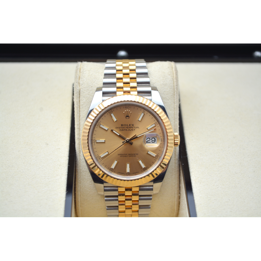 Rolex Datejust 41 Ref. 126333 este o combinație izbitoare de eleganță, prestigiu și versatilitate - un ceas care transcende moda, rămânând în același timp inconfundabil de modern. Carcasa sa Oyster de 41 mm, realizată din Rolesor (un amestec armonios de oțel Oyster și aur galben de 18 carate), radiază sofisticare și forță, întruchipând limbajul de design atemporal al Rolex.
