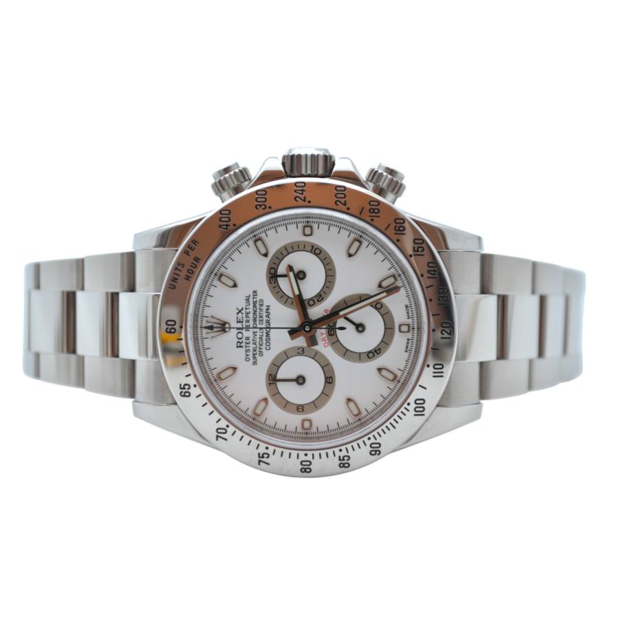O adevărată referință pentru colecționari și o piatră de hotar în istoria modelului Daytona, modelul Rolex Cosmograph Daytona ref. 116520 cu cadran APH este celebrat pentru raritatea, puritatea și designul său atemporal. Fabricat din oțel inoxidabil cu o lunetă din oțel, acest model reprezintă epoca finală a modelului Daytona clasic preceramic - foarte căutat de pasionații din întreaga lume. Carcasa Oyster de 40 mm, realizată din oțel Oystersteel rezistent la coroziune, oferă un profil curat și precis, care accentuează rădăcinile modelului Daytona în motorsport. Luneta tahimetrică din oțel gravat oferă o eleganță subtilă și discretă, distingându-l de iterațiile ceramice ulterioare și consolidându-i atractivitatea vintage.