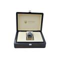 Acest ceas face parte dintr-o colectie atent selectionata, verificata si certificata de echipa noastra de experti. Ceasornicarii nostri profesionisti s-au asigurat ca este in stare excelenta de functionare, trecand teste complete, inclusiv teste de rezistenta la apa si teste de functionalitate. Ceasul prezinta semne subtile de uzura si zgarieturi minore care reflecta istoria si caracterul sau.