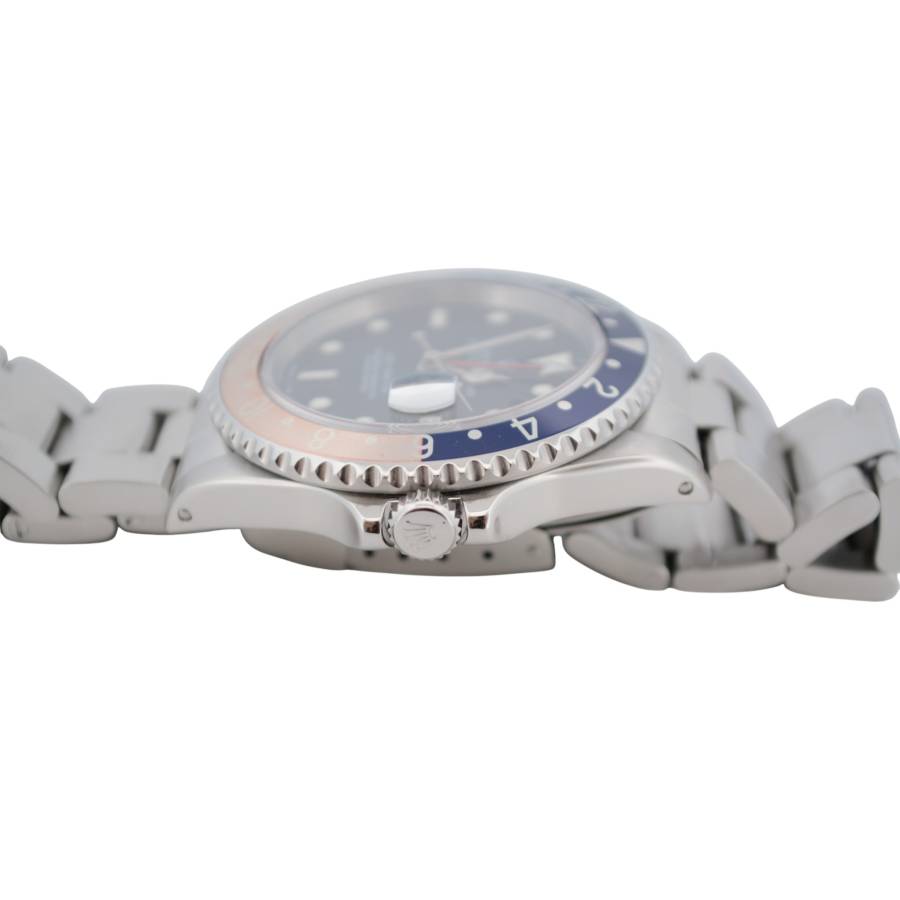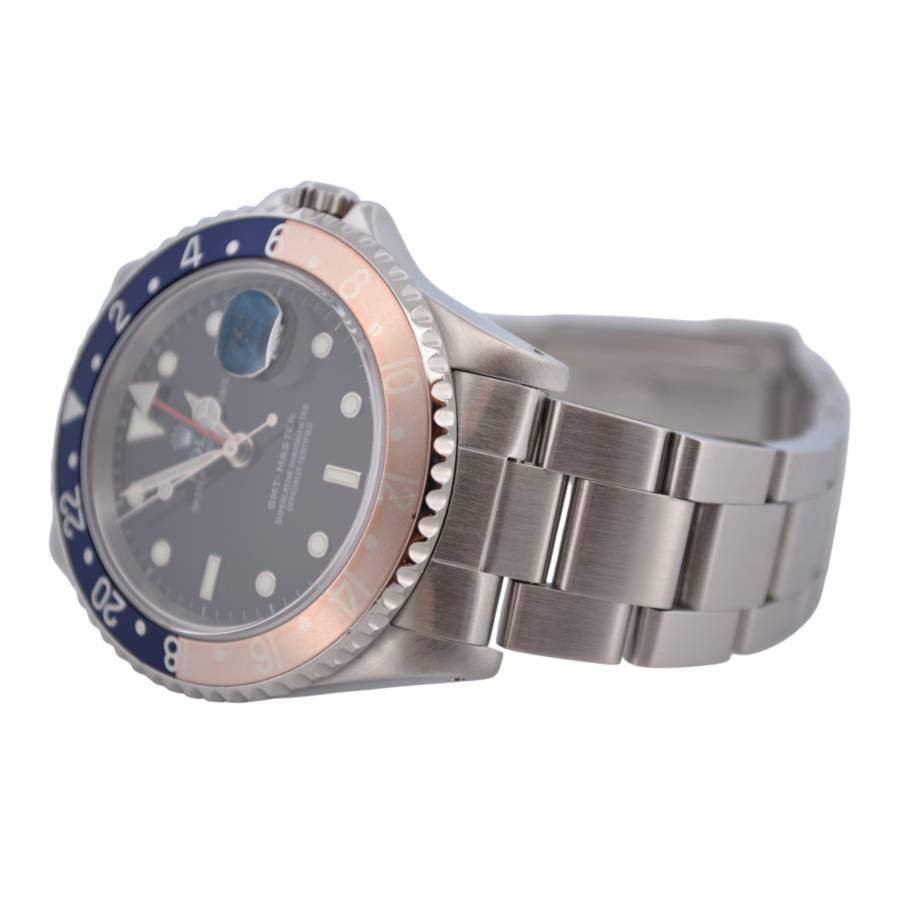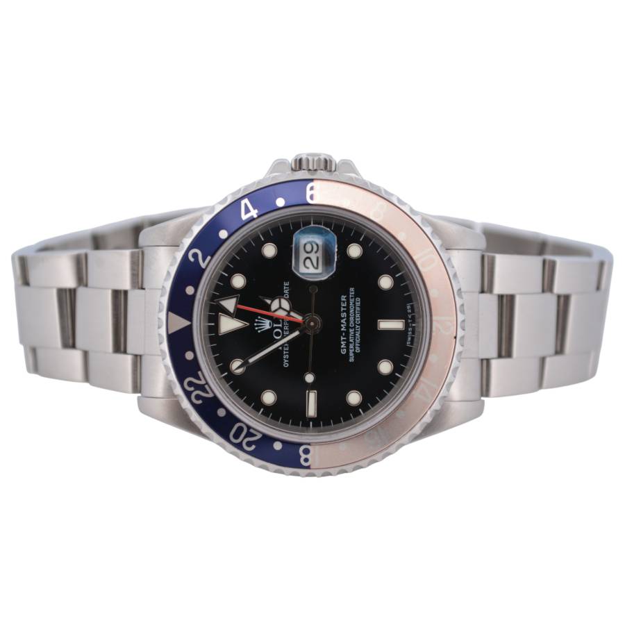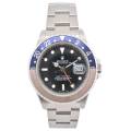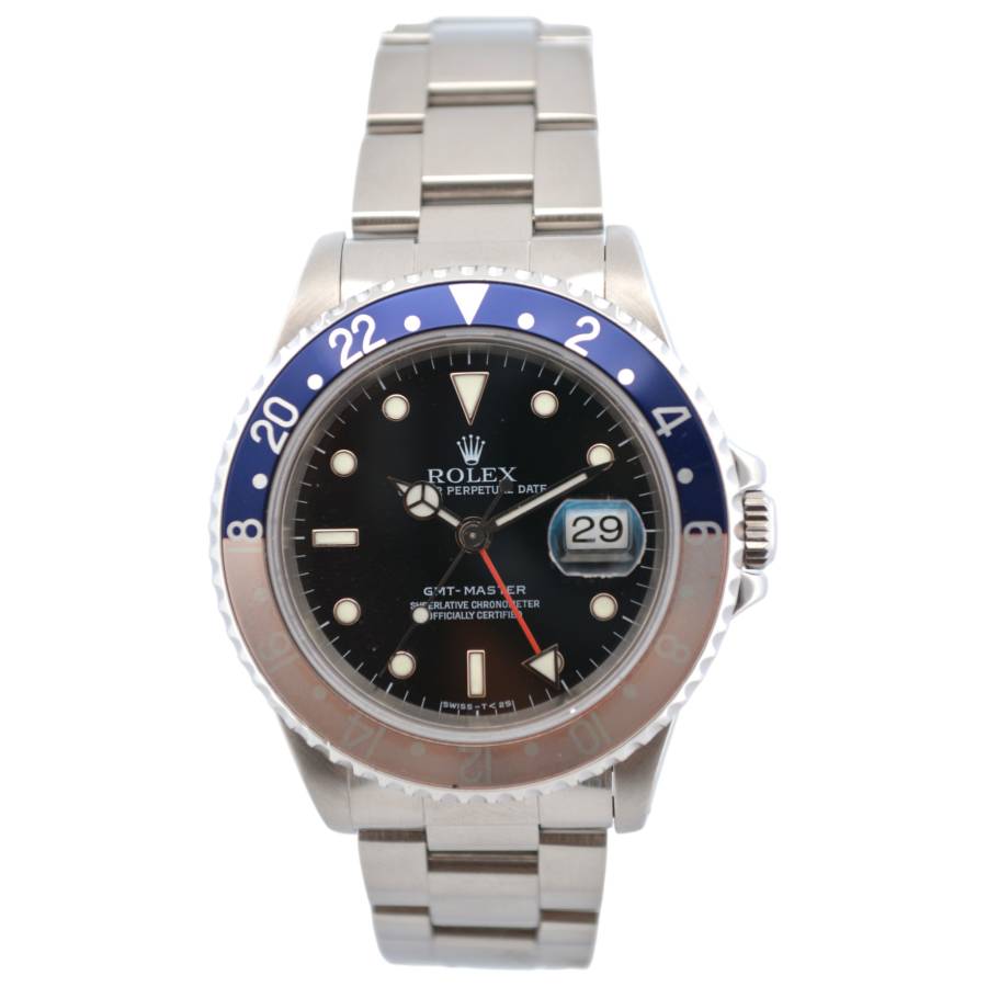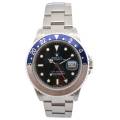 Un clasic al eleganței hotărâte, GMT-Master 16700 aduce romantismul călătoriilor aeriene de la mijlocul secolului în epoca modernă. Luneta sa roșie și albastră „Pepsi” - aluminiu sărutat de soare cu o pată potrivită de culoare - încadrează un cadran negru intens, unde acele Mercedes și indexurile orare aplicate strălucesc cu o încredere discretă. Cu 40 mm din oțel Oystersteel periat și lustruit, este subțire, echilibrată și versatilă fără efort, strecurându-se sub o manșetă, dar fiind gata pentru weekenduri.