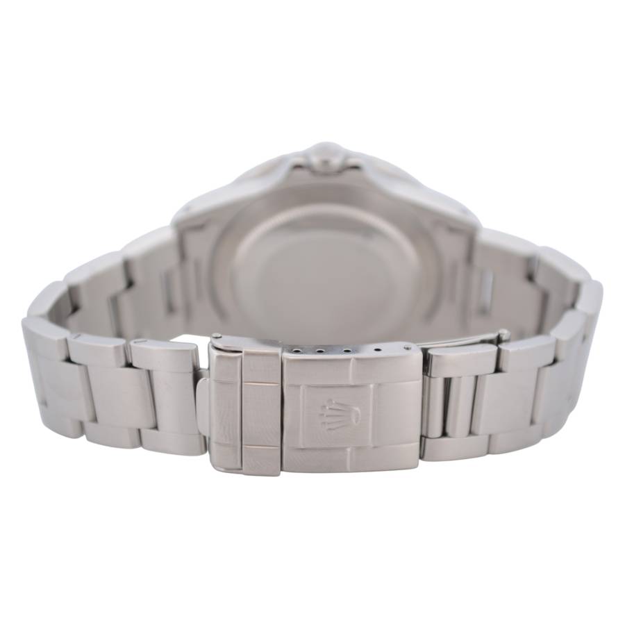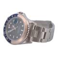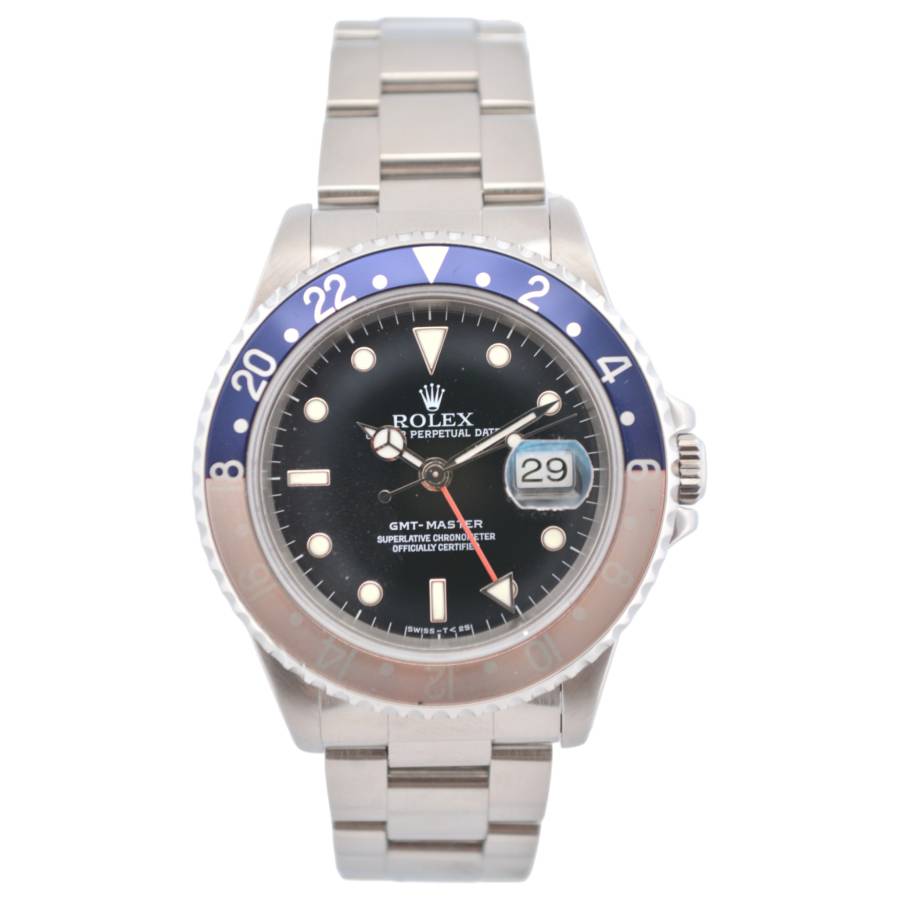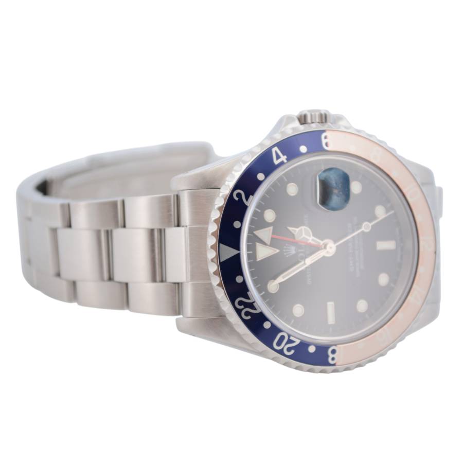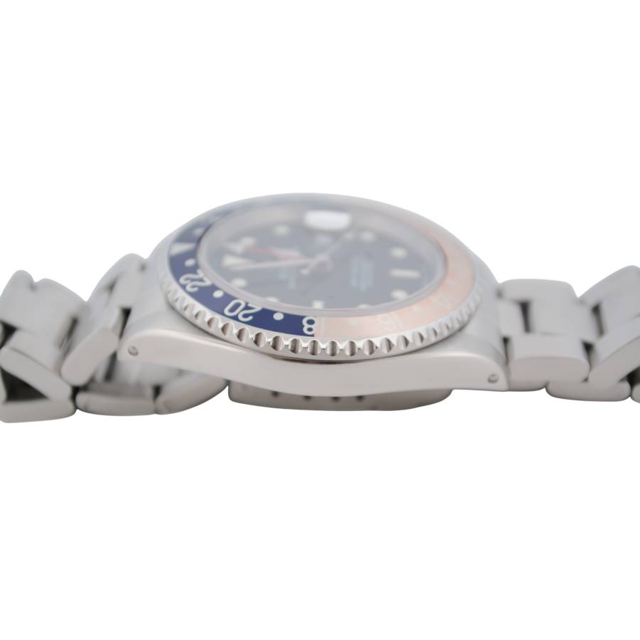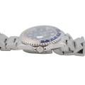 Un clasic al eleganței hotărâte, GMT-Master 16700 aduce romantismul călătoriilor aeriene de la mijlocul secolului în epoca modernă. Luneta sa roșie și albastră „Pepsi” - aluminiu sărutat de soare cu o pată potrivită de culoare - încadrează un cadran negru intens, unde acele Mercedes și indexurile orare aplicate strălucesc cu o încredere discretă. Cu 40 mm din oțel Oystersteel periat și lustruit, este subțire, echilibrată și versatilă fără efort, strecurându-se sub o manșetă, dar fiind gata pentru weekenduri.