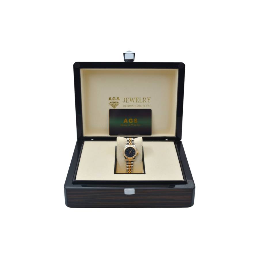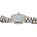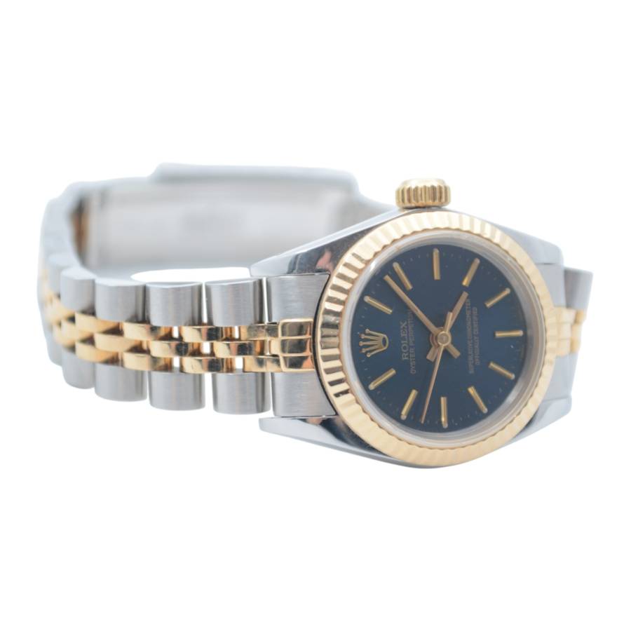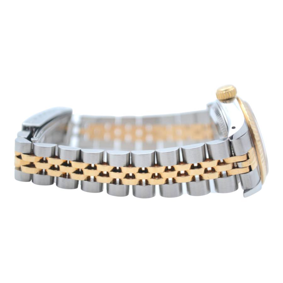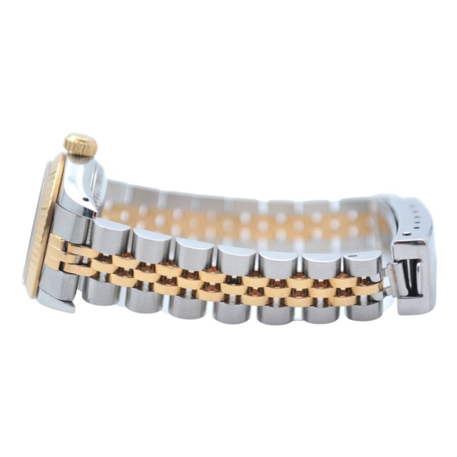 Rolex Oyster Perpetual Lady Ref. 67193 este o expresie grațioasă a feminității atemporale, unde estetica rafinată întâlnește precizia orologeriei elvețiene. Conceput pentru cei care apreciază luxul subtil, acest ceas elegant surprinde esența stilului clasic cu o prezență delicată, dar încrezătoare. Fabricat într-un amestec armonios de oțel inoxidabil și aur galben de 18k, construcția iconică Rolesor aduce căldură și rafinament încheieturii mâinii. Luneta fin canelată, strălucind la fiecare mișcare, reflectă lumina cu o strălucire discretă - o semnătură inconfundabilă a eleganței Rolex.
