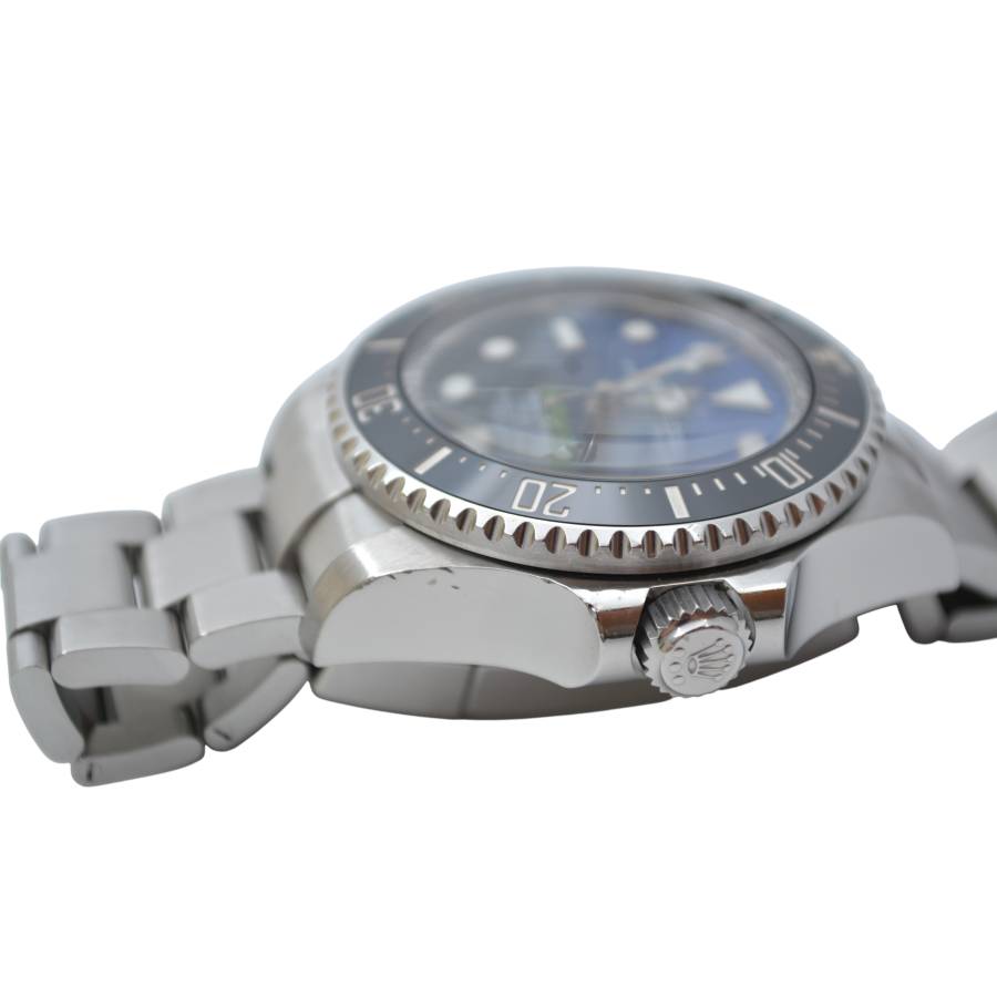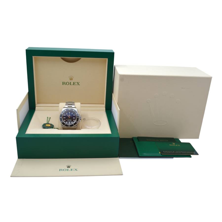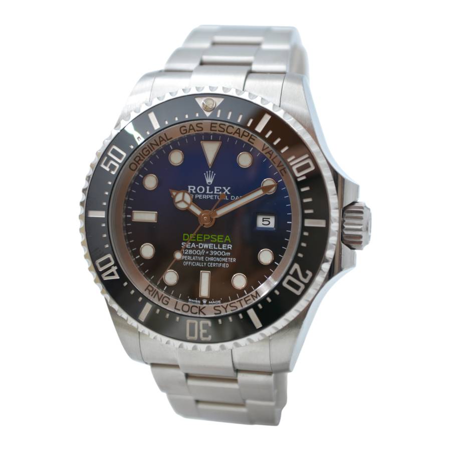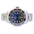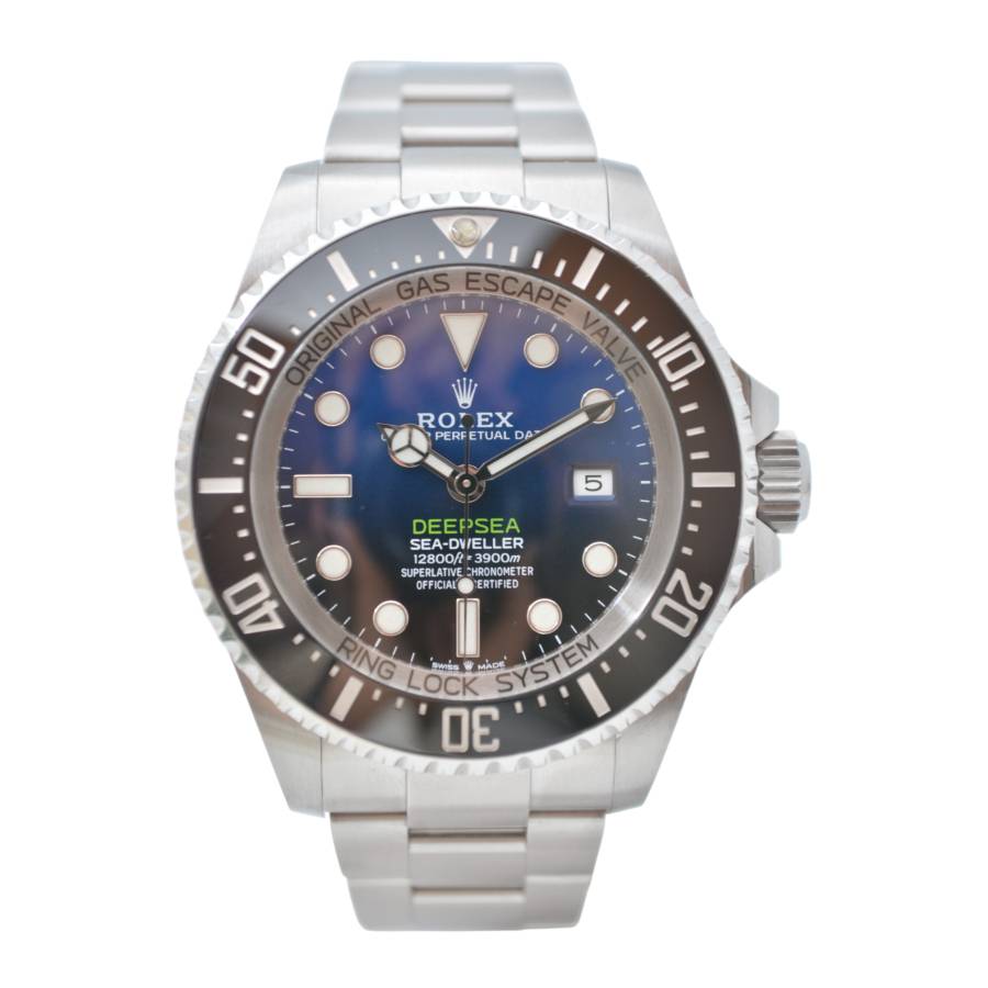 Rolex Sea-Dweller Deepsea James Cameron 126660 nu este inspirat doar de ocean - este conceput pentru a se adapta la cele mai extreme frontiere ale sale. Creat pentru a comemora cineastul și exploratorul James Cameron și istorica sa coborâre solo în Groapa Marianelor, acest ceas întruchipează spiritul depășirii limitelor umane. Legendarul cadran gradient D-Blue trece de la albastrul vibrant al oceanului la negrul absolut - un tribut vizual adus călătoriei de la lumina soarelui în întunericul copleșitor aflat la aproape 11.000 de metri sub nivelul mării. Semnătura subtilă verde „DEEPSEA” amintește de submersibilul pilotat de Cameron în timpul expediției sale din 2012.
