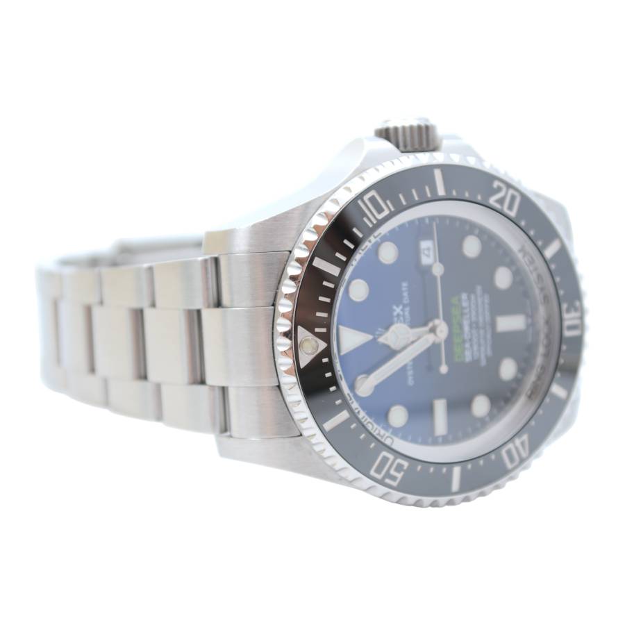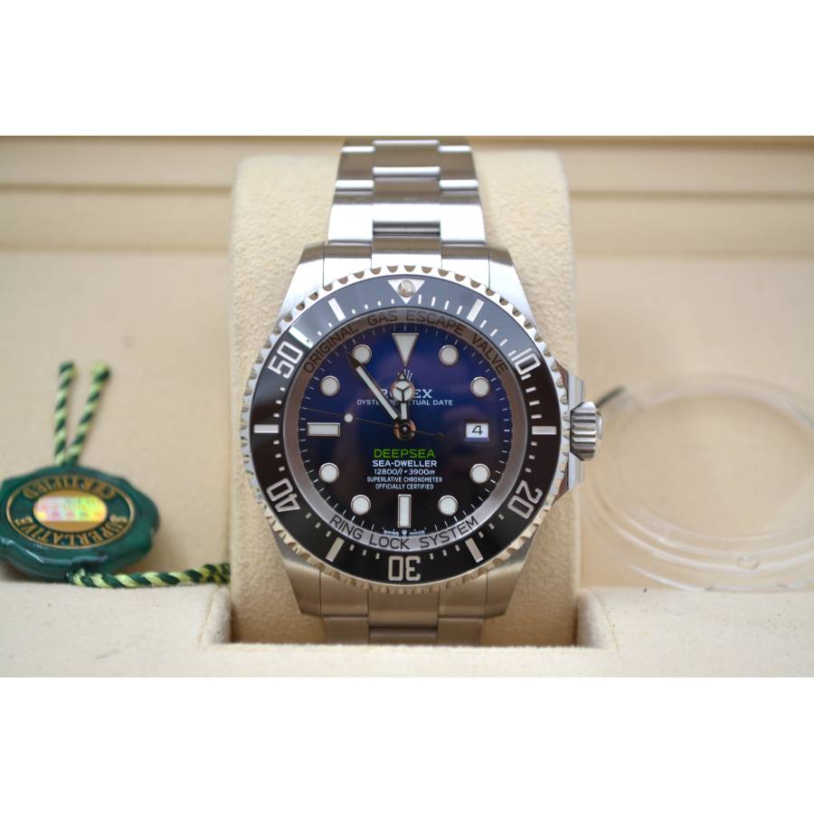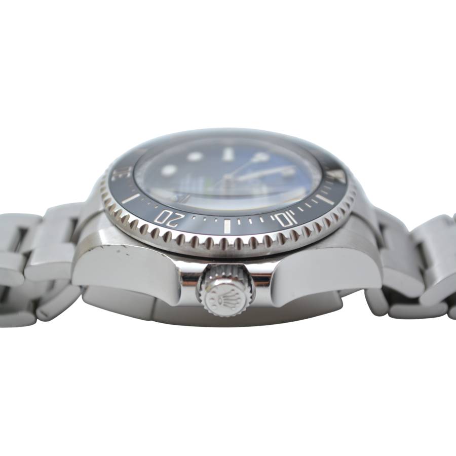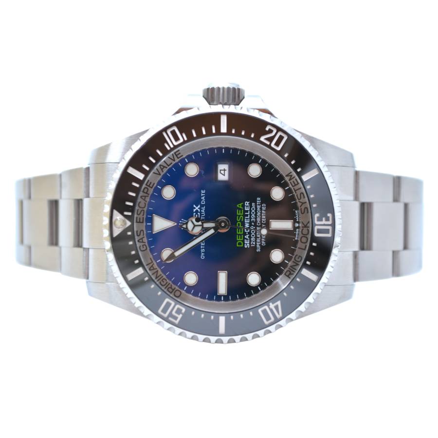 Rolex Sea-Dweller Deepsea James Cameron 126660 nu este inspirat doar de ocean - este conceput pentru a se adapta la cele mai extreme frontiere ale sale. Creat pentru a comemora cineastul și exploratorul James Cameron și istorica sa coborâre solo în Groapa Marianelor, acest ceas întruchipează spiritul depășirii limitelor umane. Legendarul cadran gradient D-Blue trece de la albastrul vibrant al oceanului la negrul absolut - un tribut vizual adus călătoriei de la lumina soarelui în întunericul copleșitor aflat la aproape 11.000 de metri sub nivelul mării. Semnătura subtilă verde „DEEPSEA” amintește de submersibilul pilotat de Cameron în timpul expediției sale din 2012.
