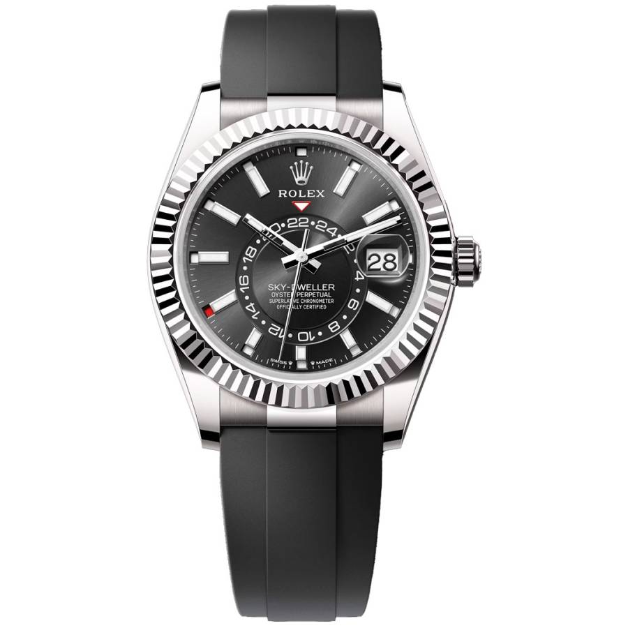 ROLEX SKY DWELLER 42MM WHITE GOLD BLACK DIAL OYSTERFLEX REF: 336238