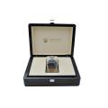 Acest ceas face parte dintr-o colectie atent selectionata, verificata si certificata de echipa noastra de experti. Ceasornicarii nostri profesionisti s-au asigurat ca este in stare excelenta de functionare, trecand teste complete, inclusiv teste de rezistenta la apa si teste de functionalitate. Ceasul prezinta semne subtile de uzura si zgarieturi minore care reflecta istoria si caracterul sau.