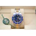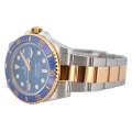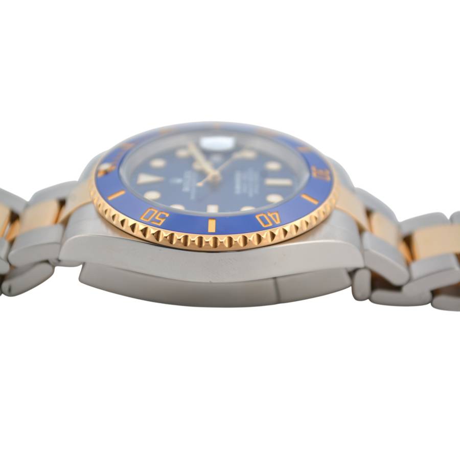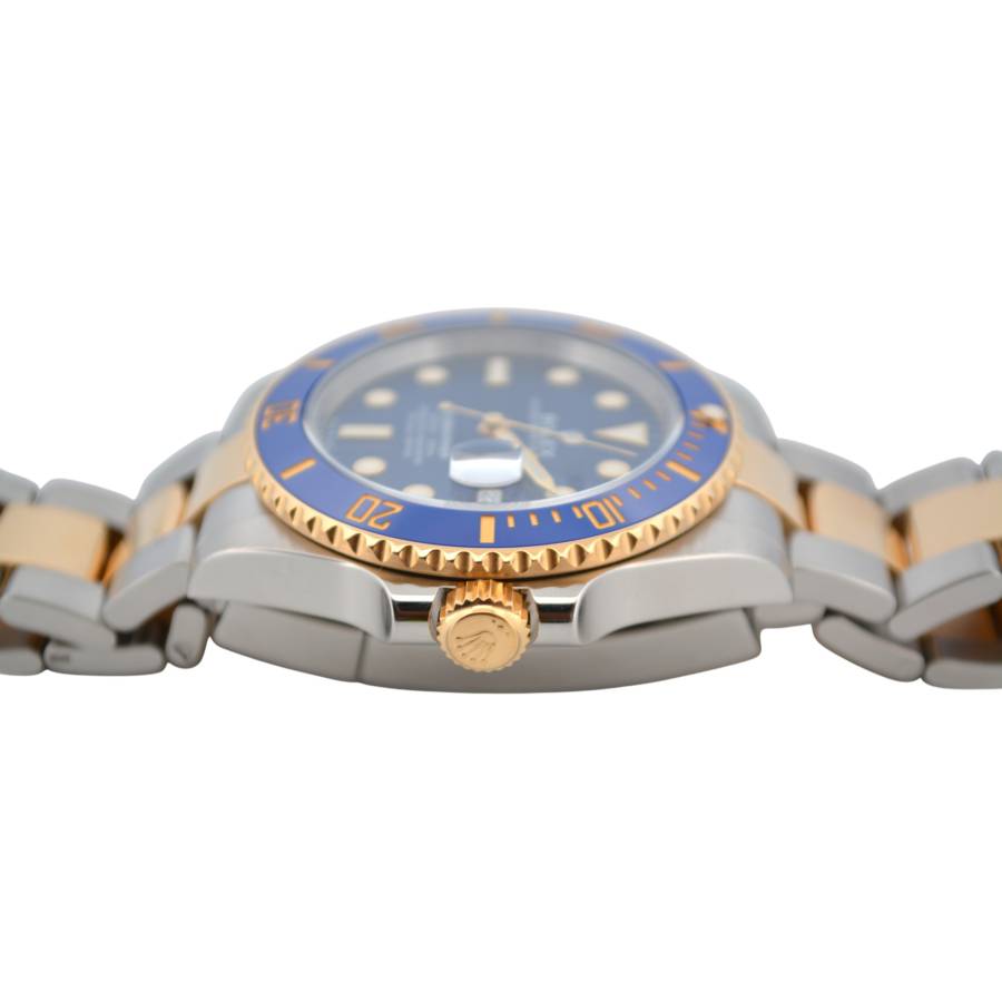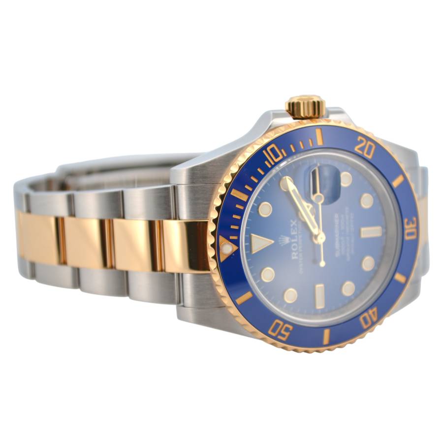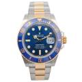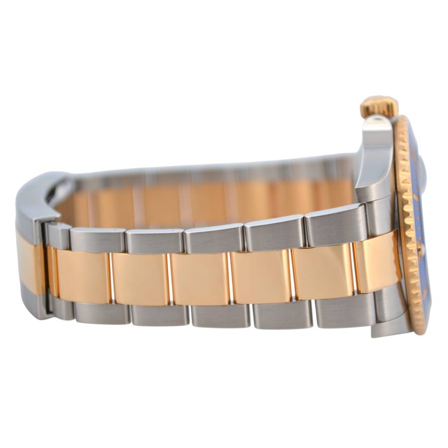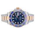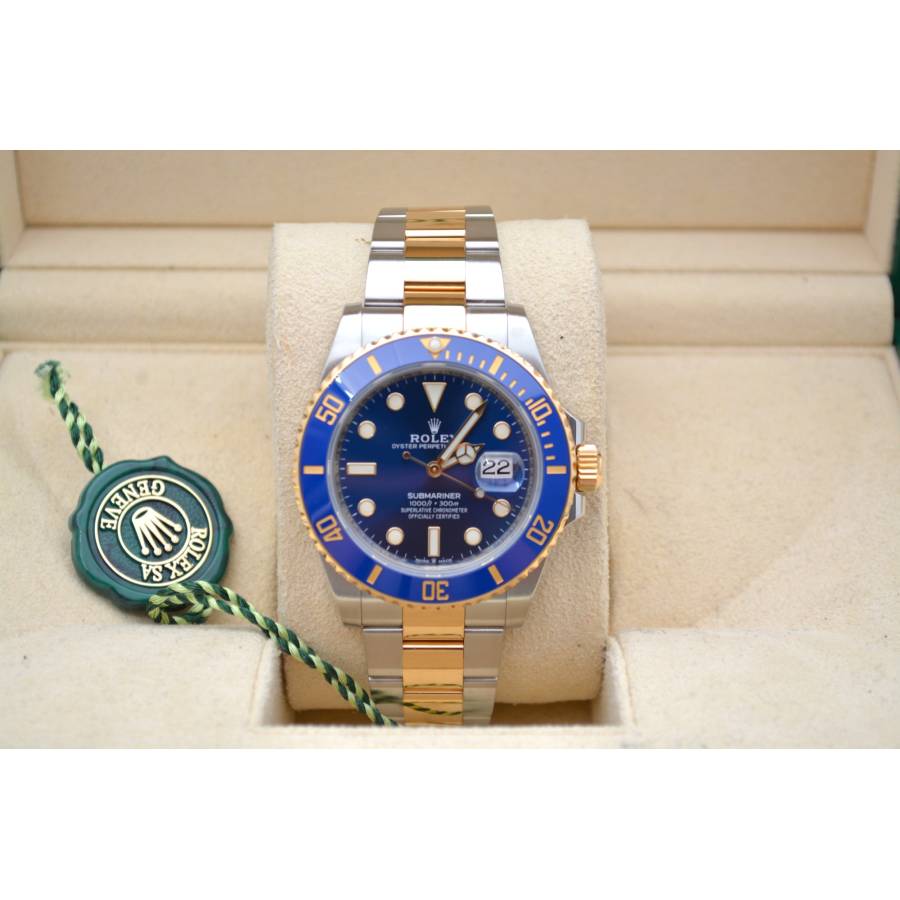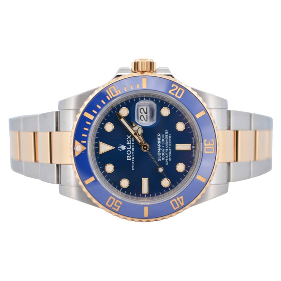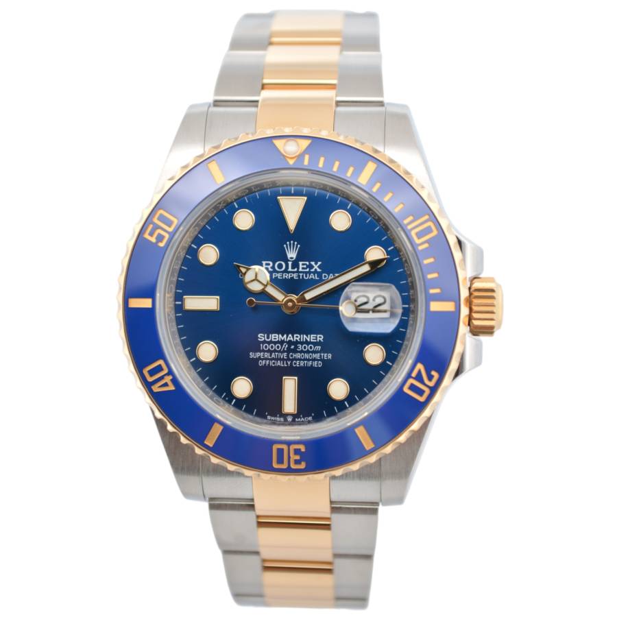 Rolex Submariner Date Ref. 126613LB, adesea poreclit „Bluesy”, este o expresie izbitoare a luxului și performanței. Fabricat în combinația emblematică Rolex, oțel Oystersteel și aur galben de 18 carate, acesta radiază atât forță, cât și eleganță. Ceasul prezintă un cadran albastru regal vibrant, cu aspect de soare, completat frumos de o lunetă Cerachrom asortată din ceramică albastră, oferind o rezistență excepțională la decolorare și zgârieturi.
