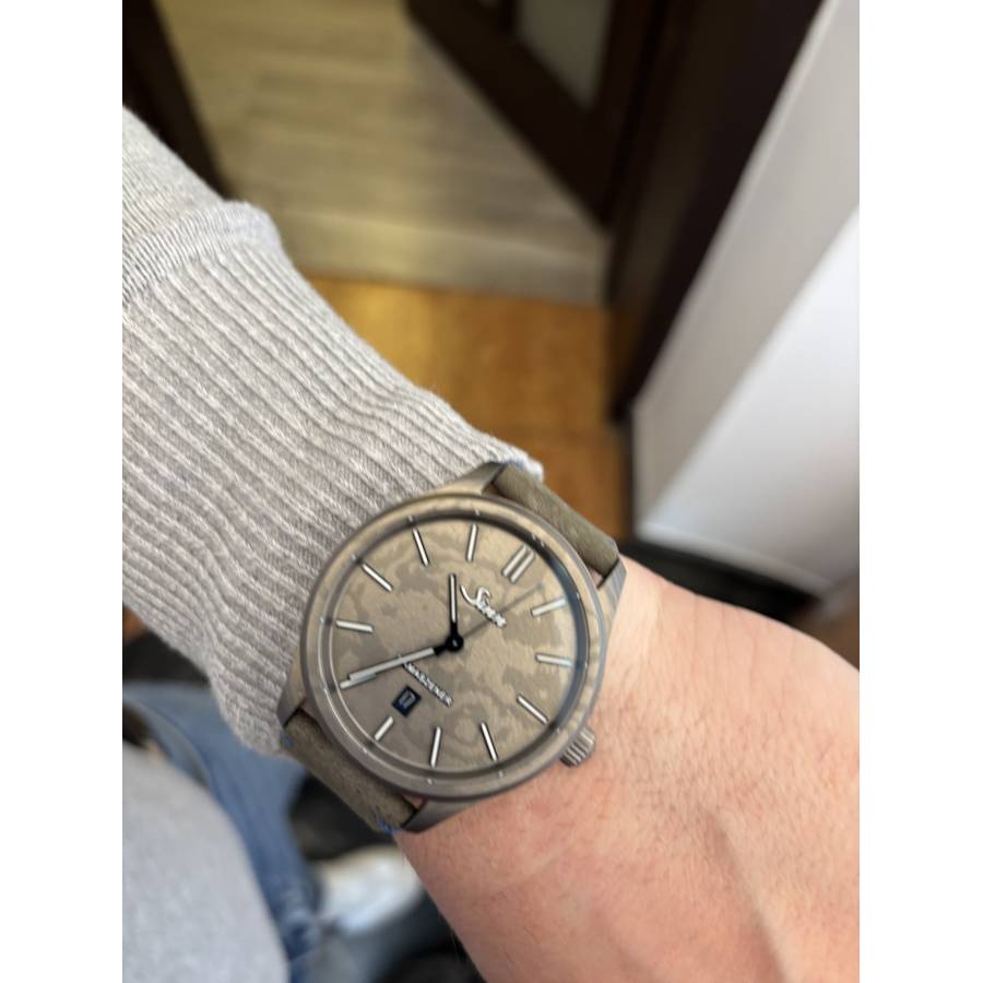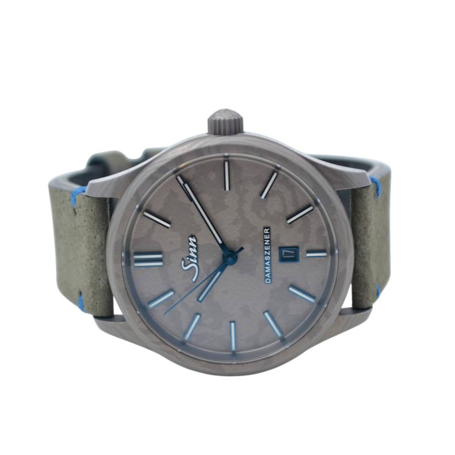 Sinn Damaszener Ref. 1800.06 este unul dintre cele mai rare modele produse de manufactura germană Sinn Spezialuhren. Cadranul este realizat din titan Damasc autentic, obținut prin forjarea și plierea repetată a straturilor metalice, ceea ce creează un desen organic unic pentru fiecare exemplar. Niciun ceas nu are același model de suprafață. Carcasa de 43 mm păstrează estetica sobră specifică brandului, combinând instrumentul tehnic cu o execuție artizanală rar întâlnită în colecțiile Sinn. Modelul este echipat cu mecanism automat elvețian, protejat împotriva șocurilor și variațiilor de temperatură, conform standardelor funcționale ale mărcii. Referinta 1800.06 a fost produsa în serie foarte limitată și este considerat un model de colecție datorită utilizării titanului Damasc, material aproape absent în orologeria contemporană.
