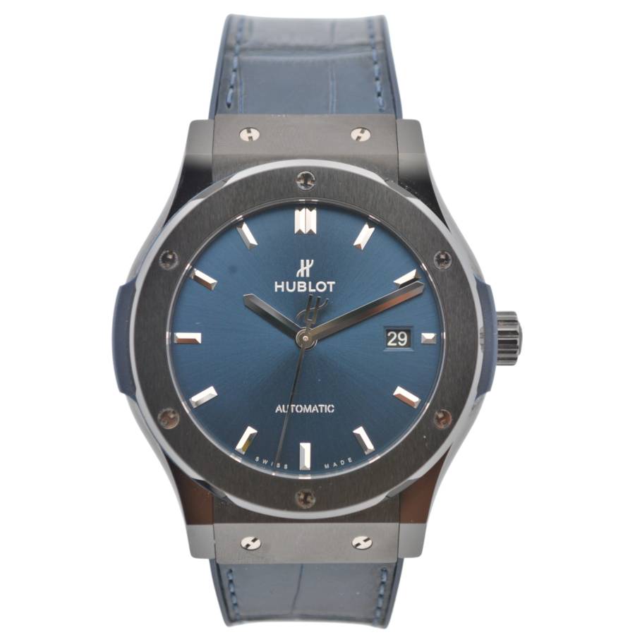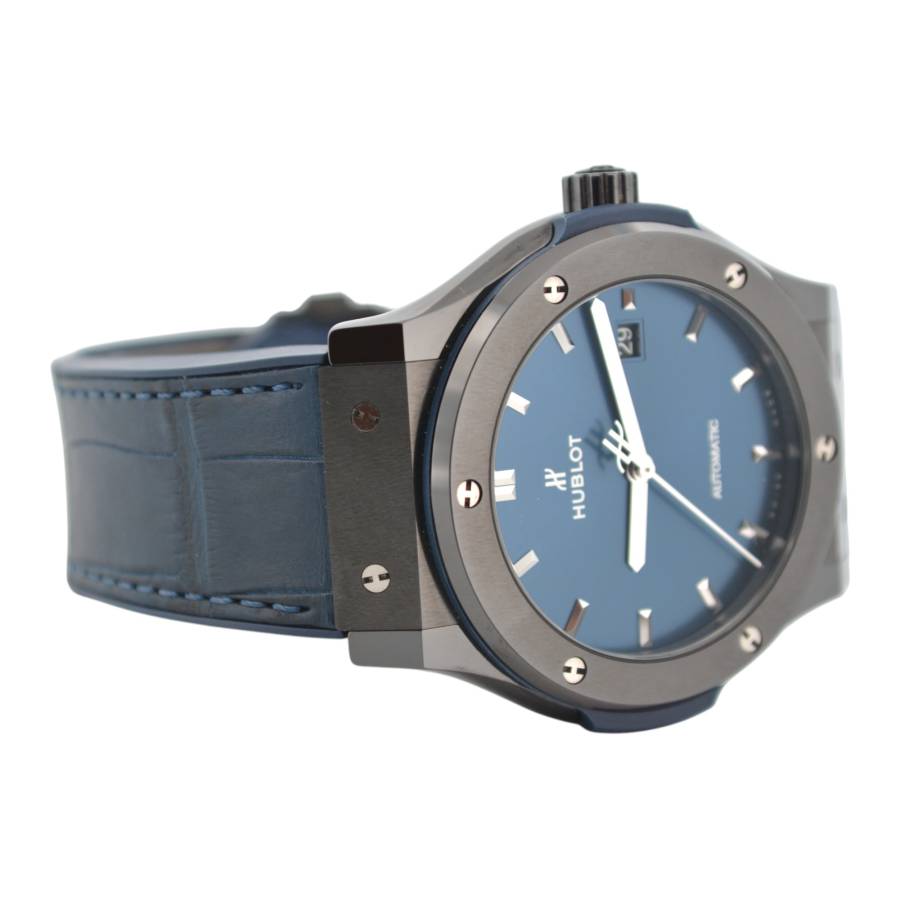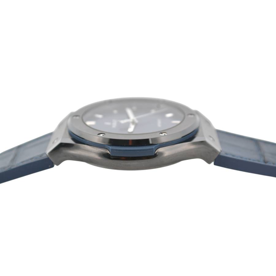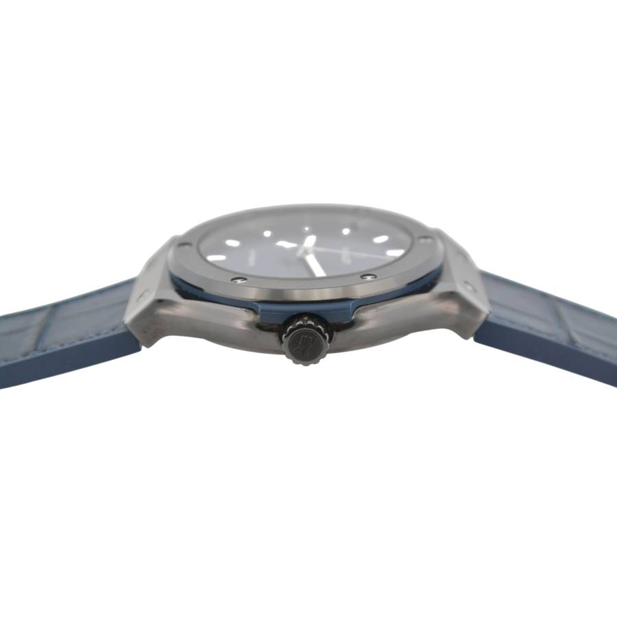 Carcasa de 42 mm, meticulos realizată din titan de gradul 5 satinat și lustruit, întruchipează echilibrul ideal între rezistență și confort extrem de ușor - o expertiză perfecționată de Hublot. Luciul său subtil albăstrui captează lumina cu o atracție magnetică. În centrul său se află mecanismul cronograf automat HUB1153, oferind o rezervă de putere robustă de 42 de ore (unele surse menționează 48 de ore) și un ritm lin de precizie.