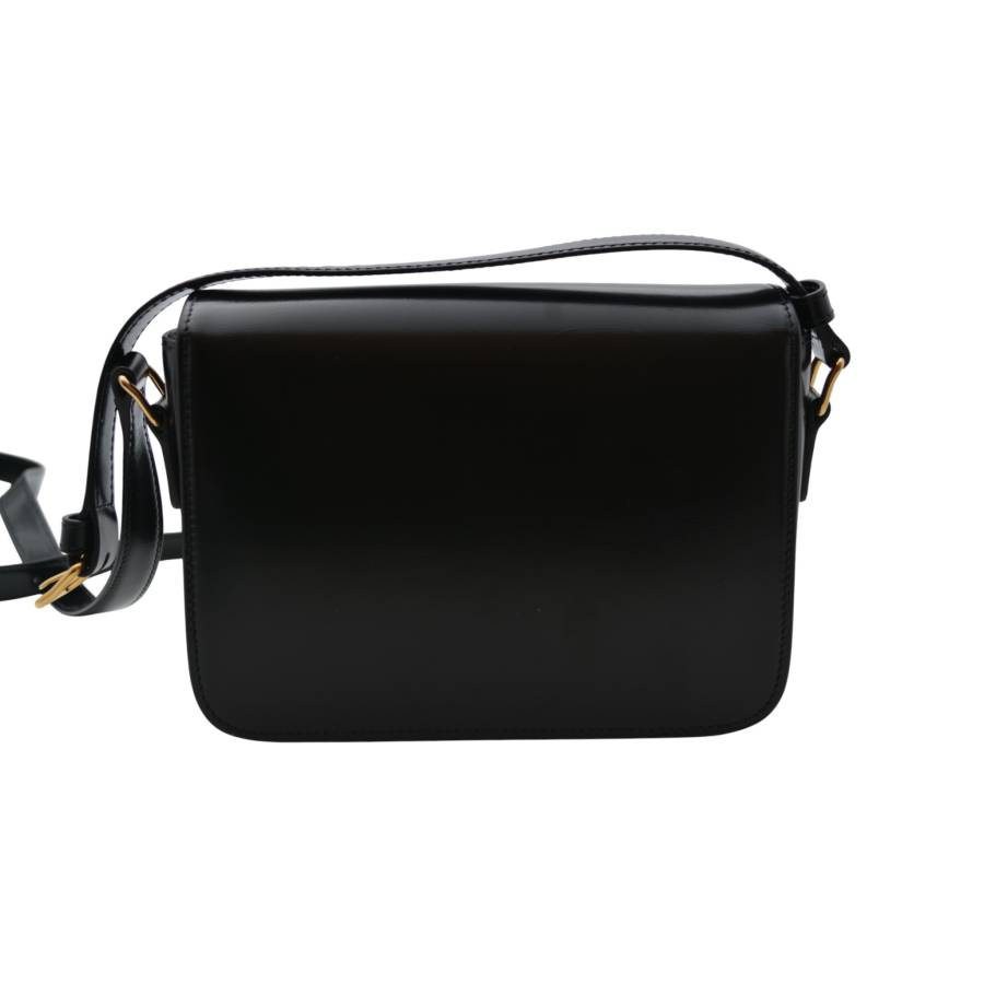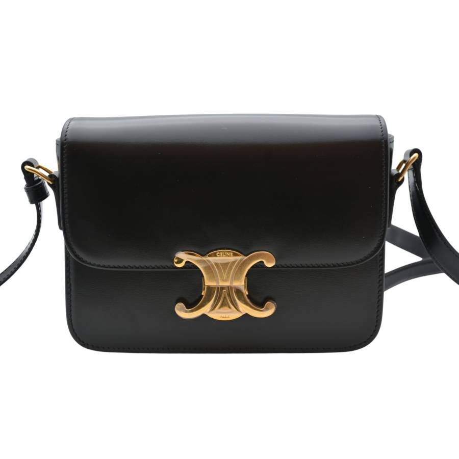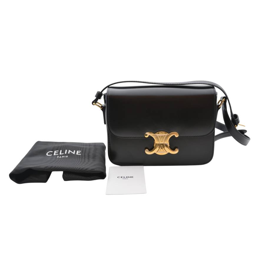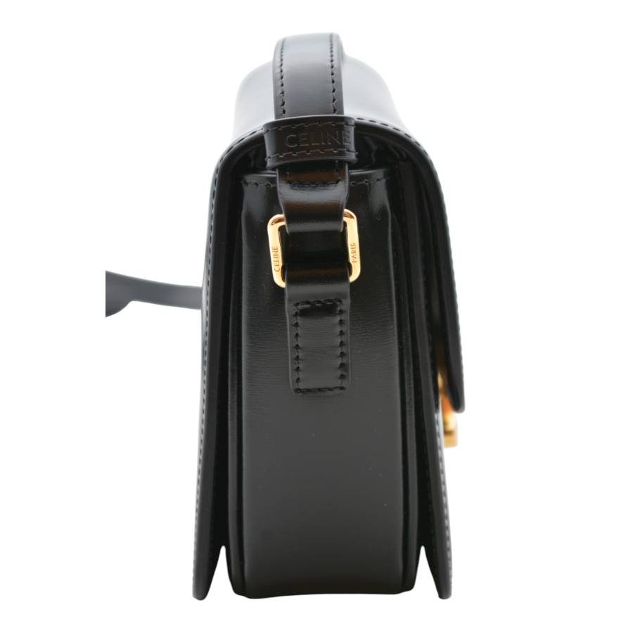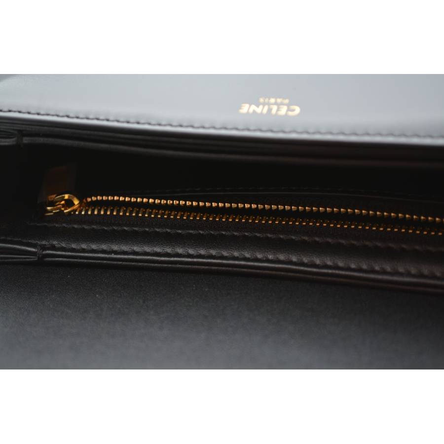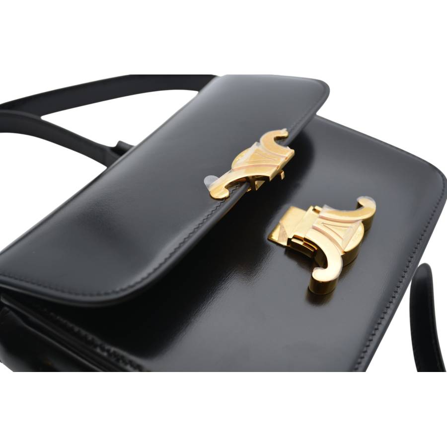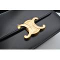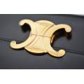 Geanta Celine Triomphe este întruchiparea rafinamentului parizian discret - o piesă care vorbește cu blândețe, dar puternic, despre stilul atemporal. Fabricată din piele de vițel neagră neagră, silueta sa elegantă și structurată emană rafinament, în timp ce finisajul impecabil reflectă dedicarea Casei față de excelența artizanală. În centrul acestui design se află iconica încuietoare Triomphe aurie, un simbol adânc înrădăcinat în moștenirea Celine, inspirat de lanțurile complexe care înconjoară Arcul de Triumf din Paris. Acest detaliu distinctiv transformă geanta în mai mult decât un accesoriu - este un omagiu adus eleganței și istoriei capitalei franceze. Versatil și rafinată, cureaua reglabilă din piele permite purtarea ei elegantă pe umăr sau crossbody, pentru o comoditate modernă.