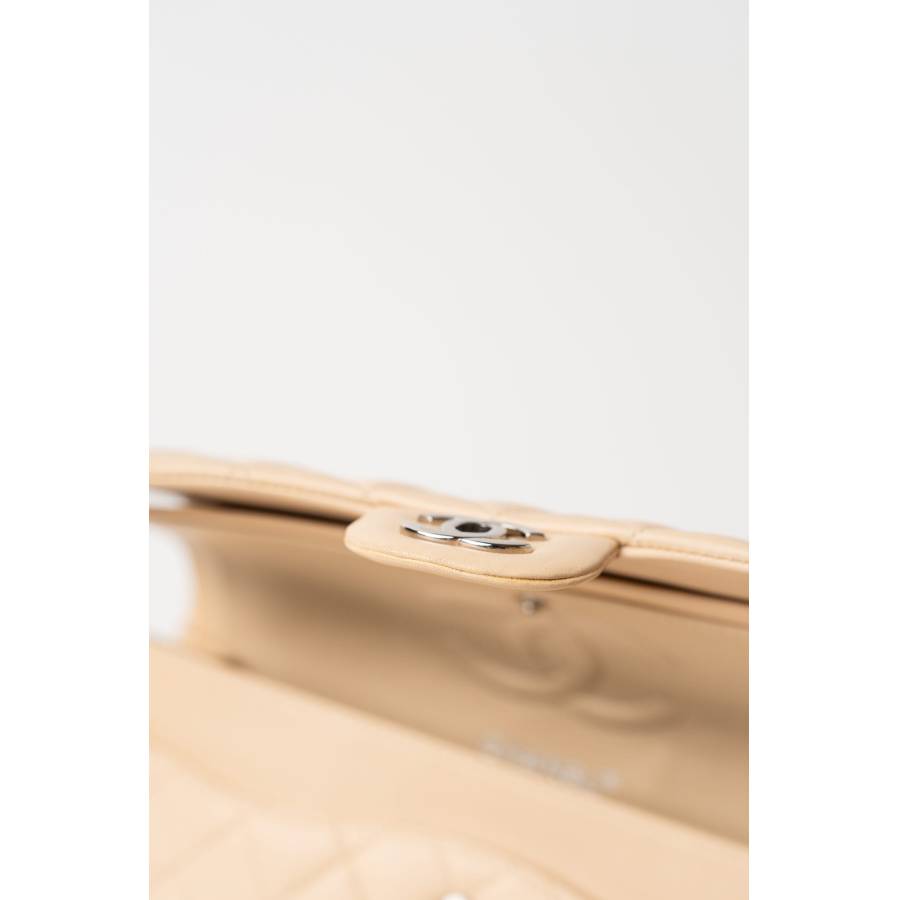 Descoperiți eleganța atemporală cu această geantă Chanel Classic Double Flap Jumbo, o adevărată icoană a luxului și sofisticării. Fabricată din piele bej suplă și finisată cu matlasarea cu diamant, semnătura Chanel, această piesă întruchipează armonia perfectă dintre rafinament și versatilitatea de zi cu zi. Nuanța neutră moale îi sporește farmecul natural, făcând-o un companion ideal pentru orice anotimp și orice ocazie. Cureaua argintie din lanț și piele adaugă nota potrivită de strălucire modernă, în timp ce închizătoarea iconică interblocantă CC completează aspectul cu alura Chanel inconfundabilă. În interior, construcția cu clapă dublă dezvăluie un interior proiectat cu grijă - atât practic, cât și frumos rafinat - oferind compartimente multiple pentru a vă păstra lucrurile esențiale perfect organizate.