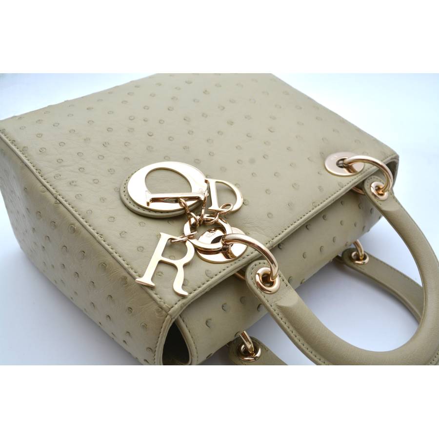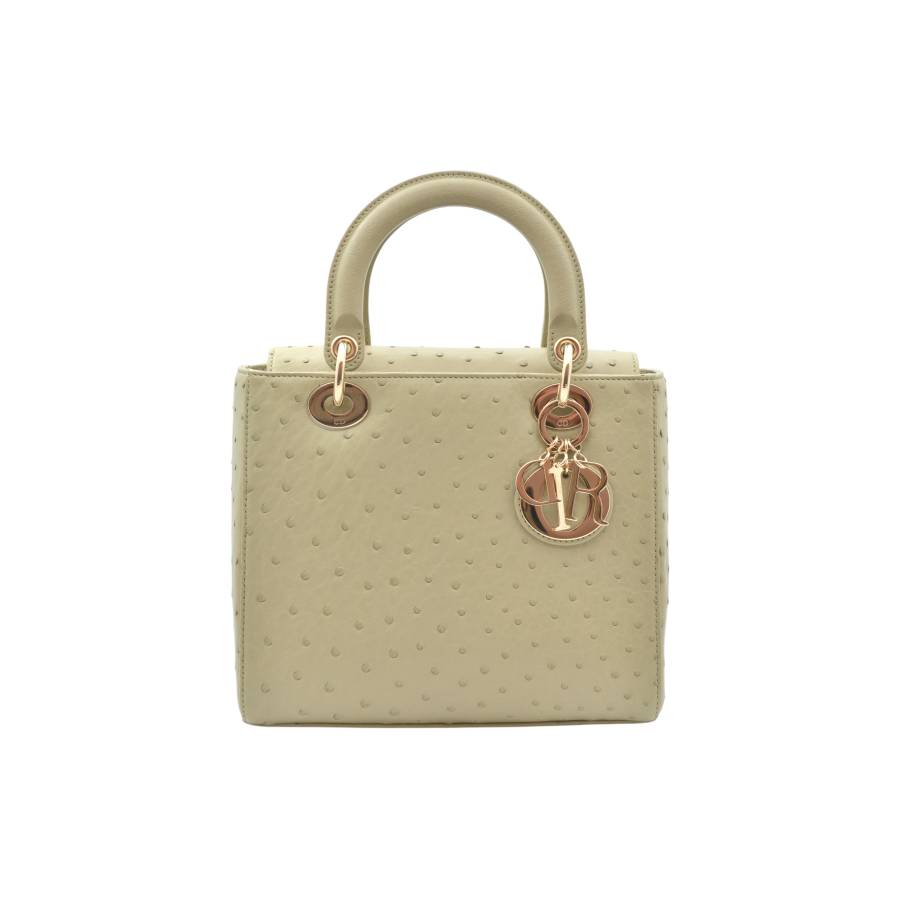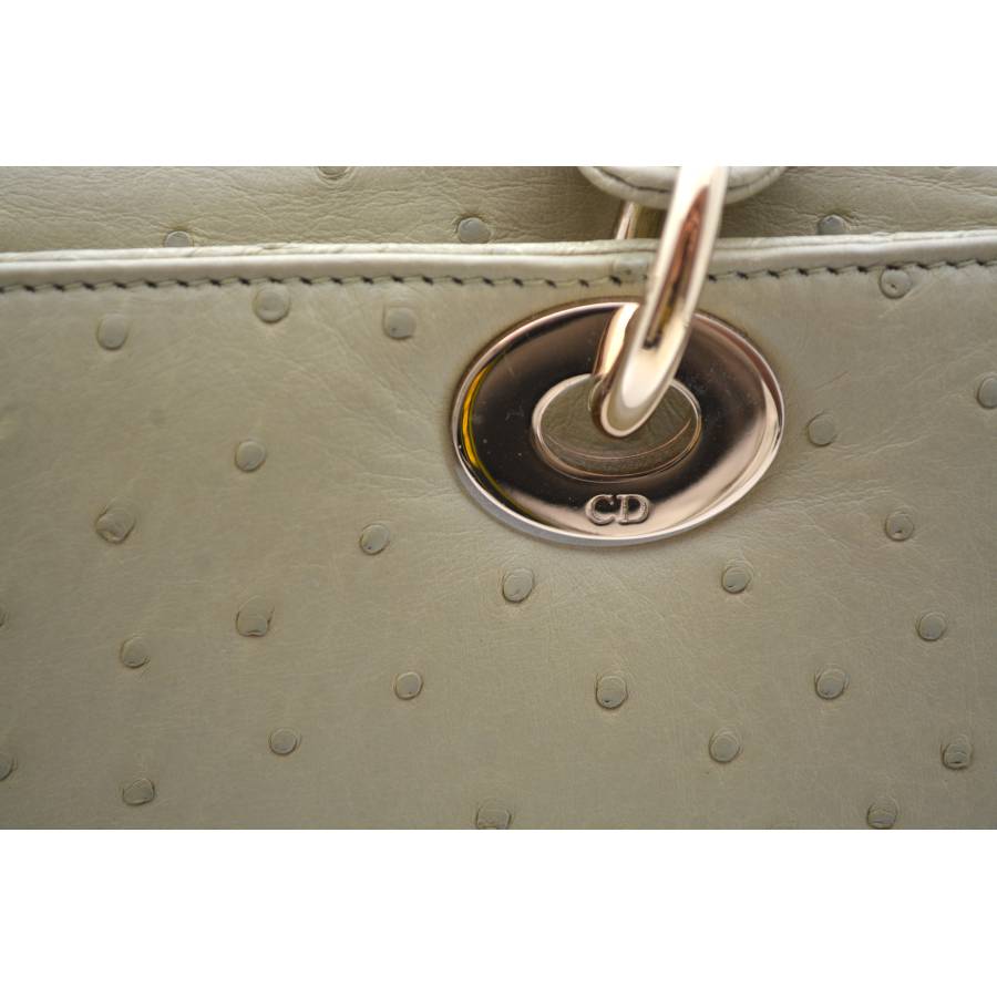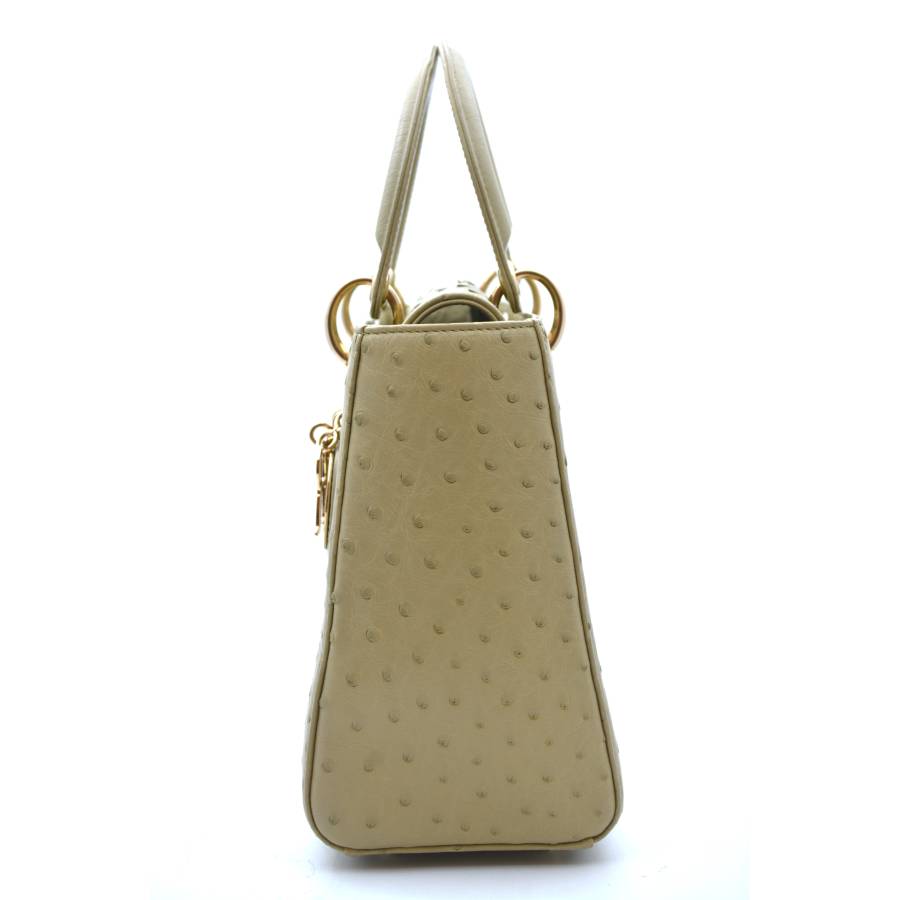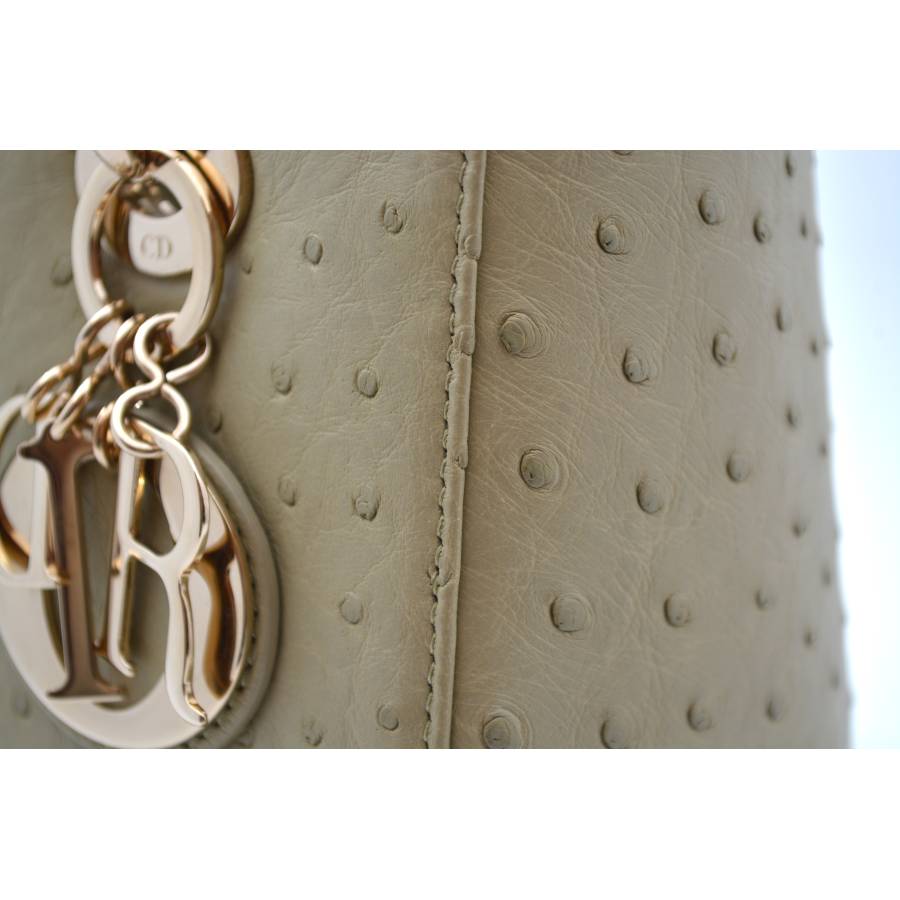 DIOR LADY D MEDIUM BEIGE OSTRICH TOTE BAG