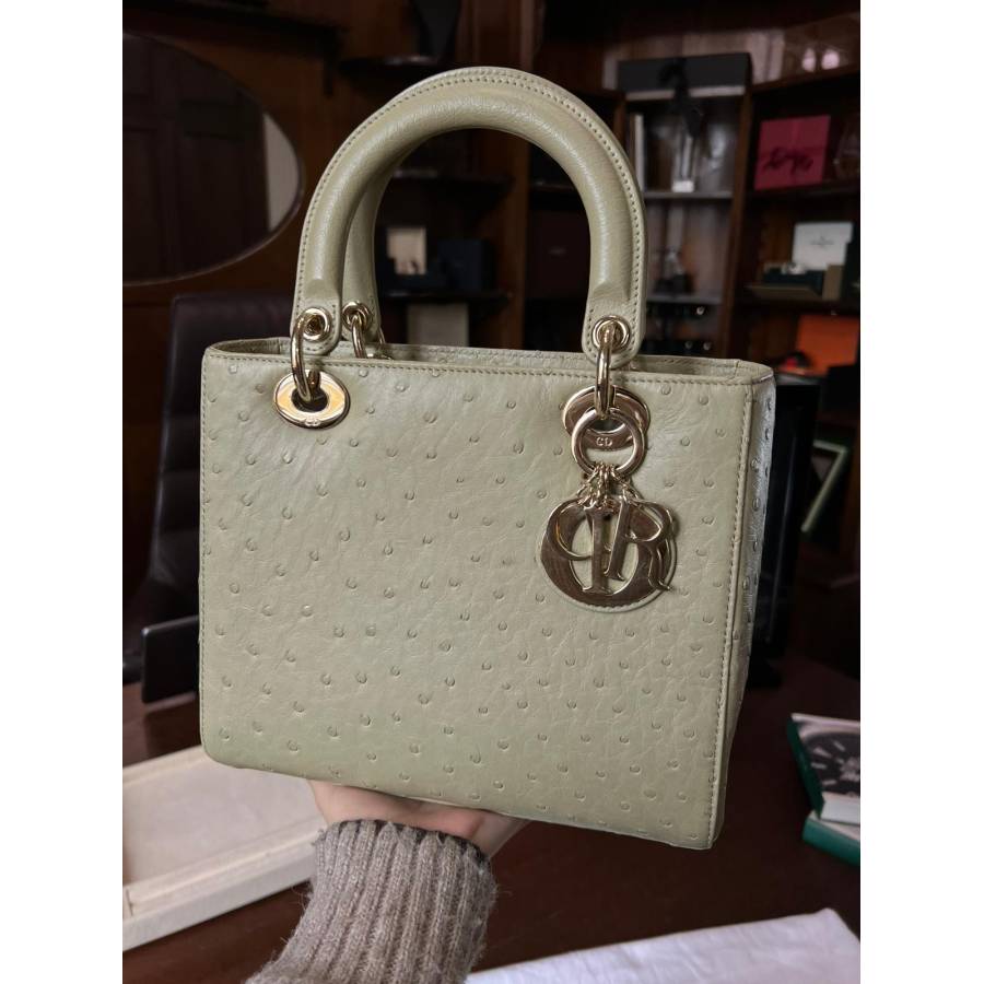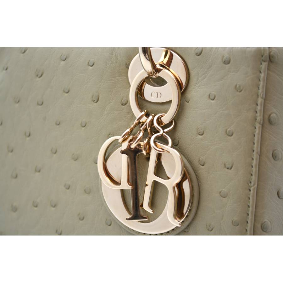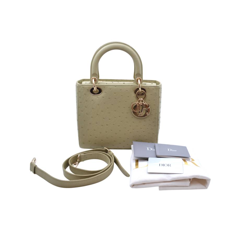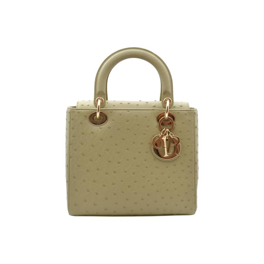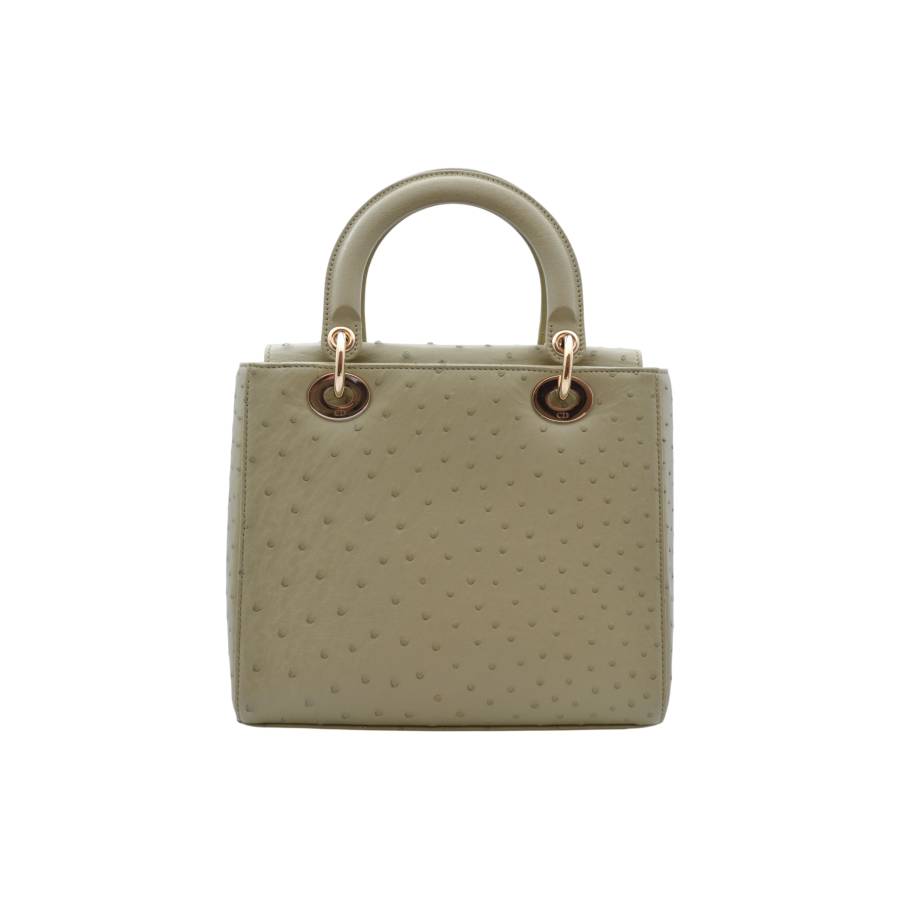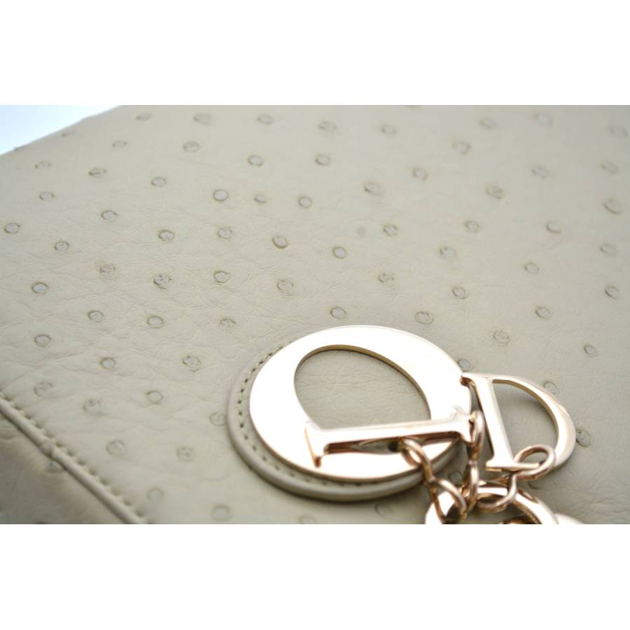 DIOR LADY D MEDIUM BEIGE OSTRICH TOTE BAG
