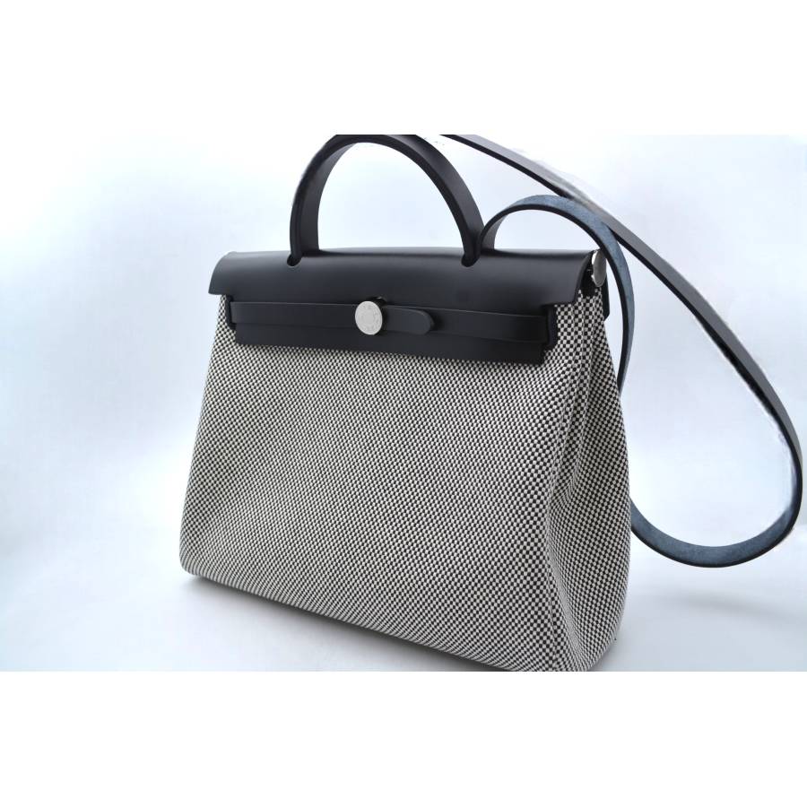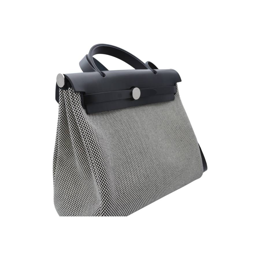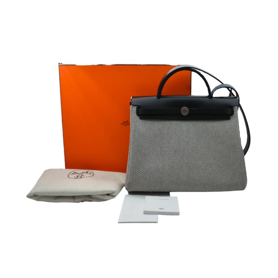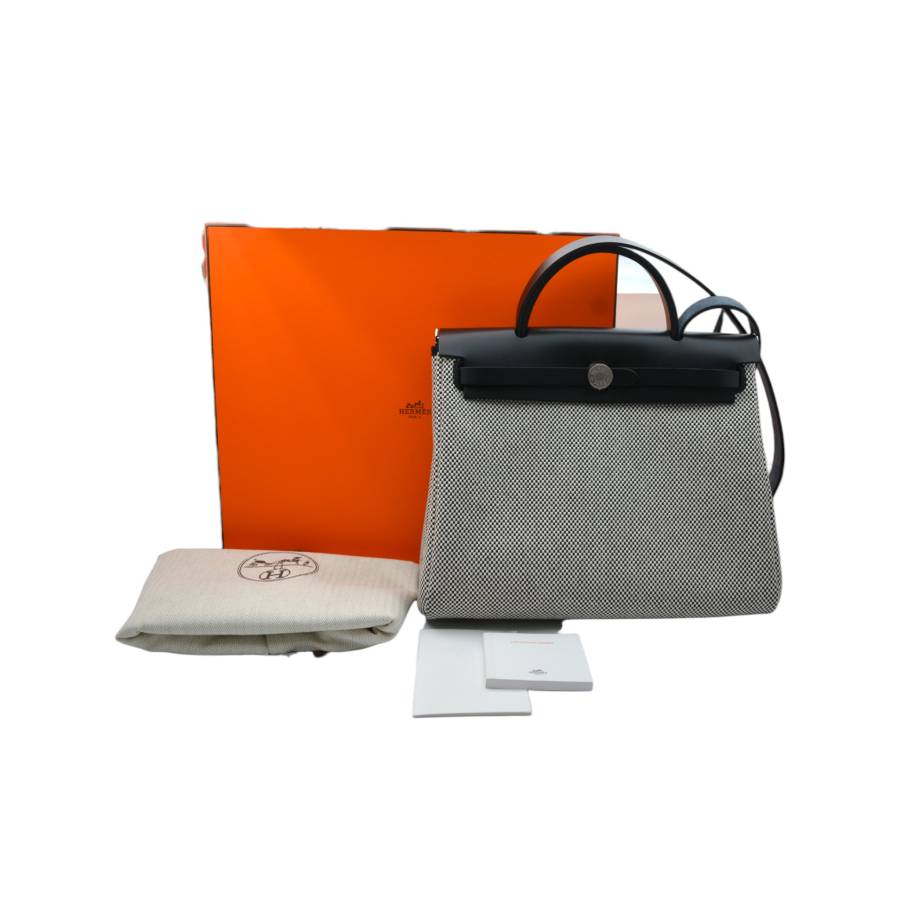 HERMES HERBAG ZIP 31 TOILE CRISS CROSS BLACK LEATHER