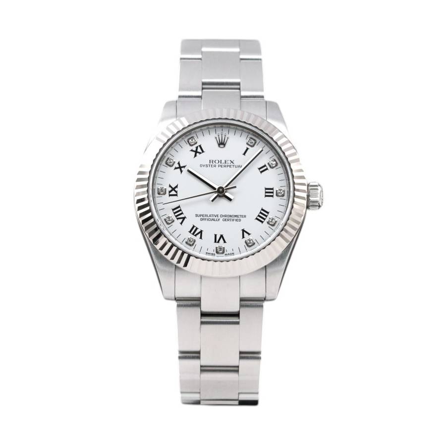 ROLEX OYSTER PERPETUAL 31 STEEL WHITE ROMAN DIAMOND DIAL 2007 FULL SET REF:177234
