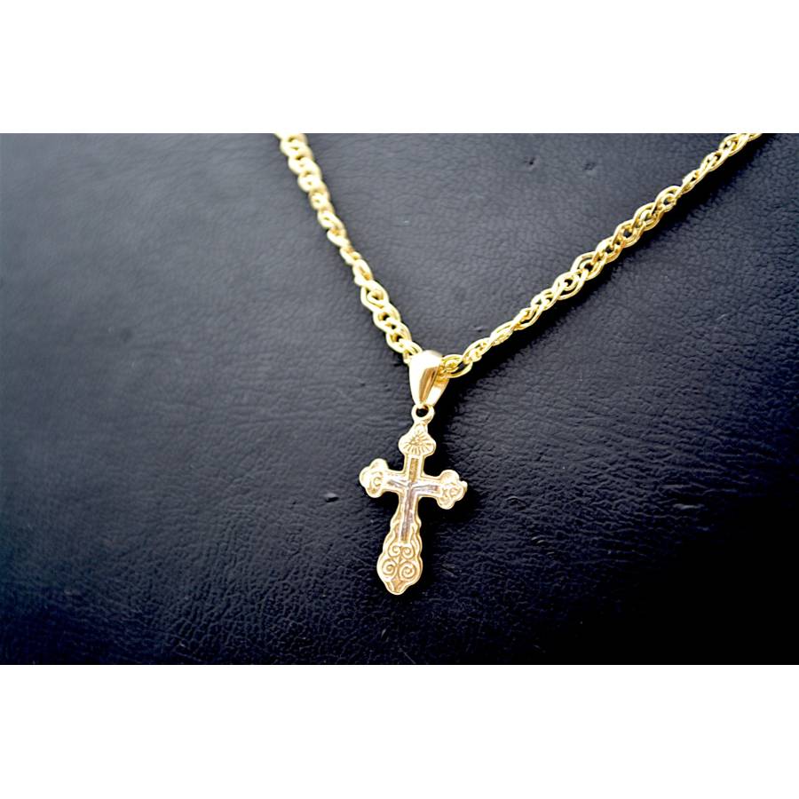 LANT SI PANDANT IN FORMA DE CRUCE DIN AUR GALBEN 14K_130019