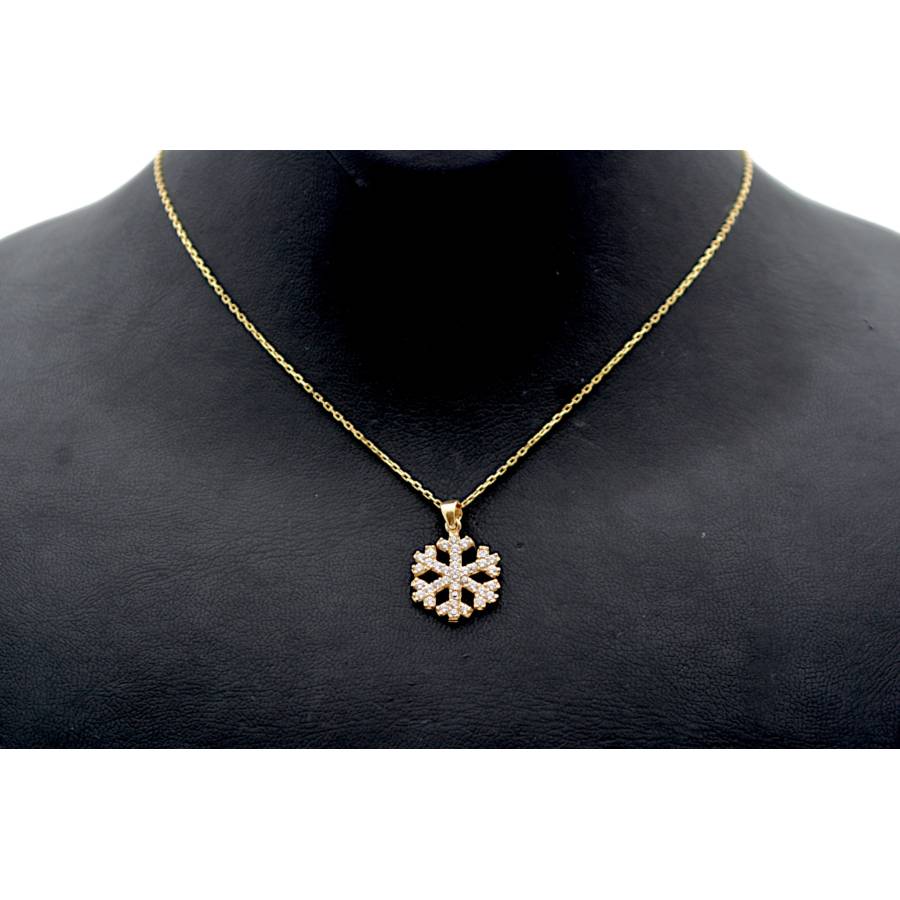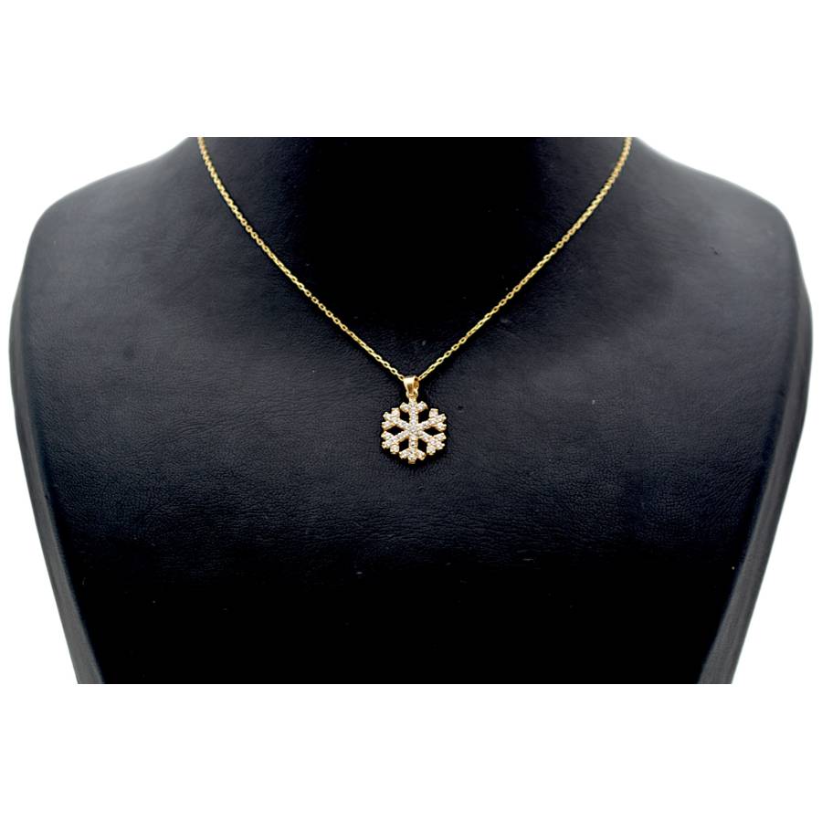 LANT SI PANDANT IN FORMA DE FULG DE NEA DIN AUR GALBEN 14K_130974