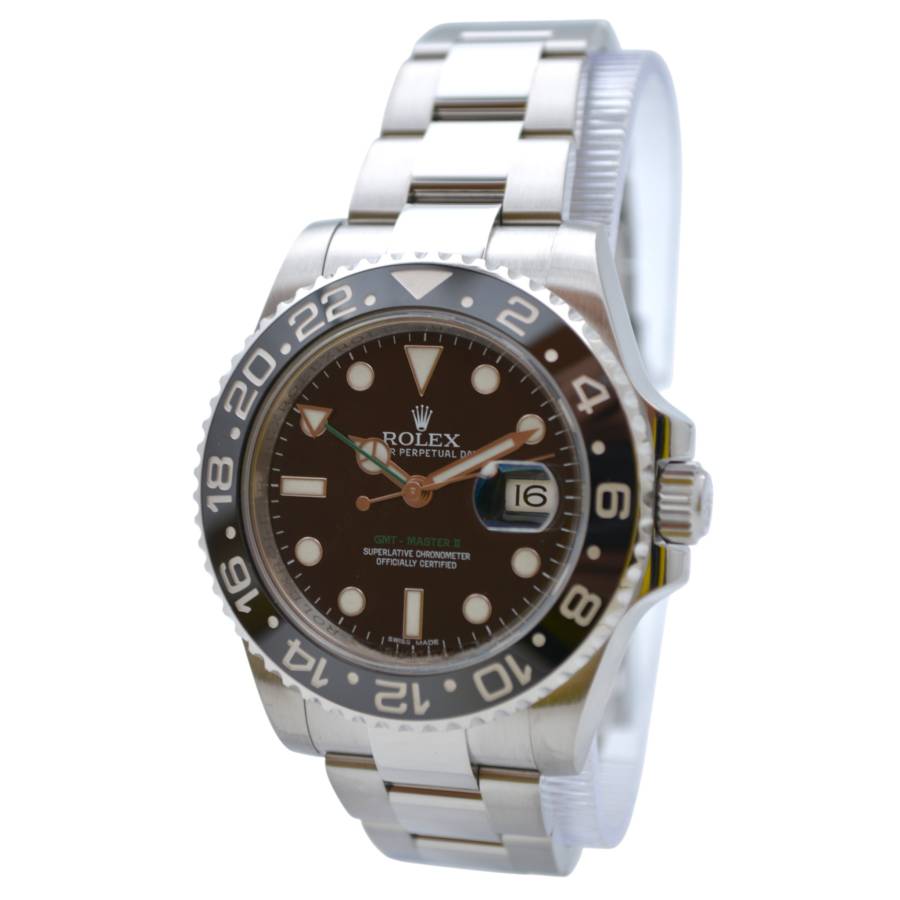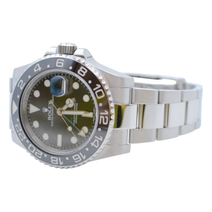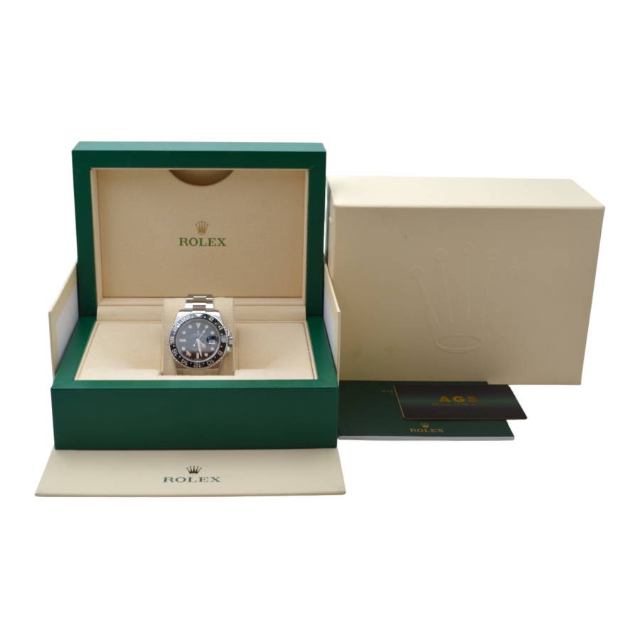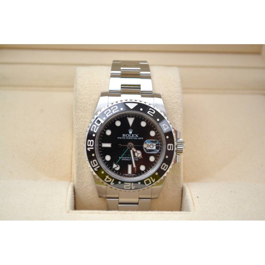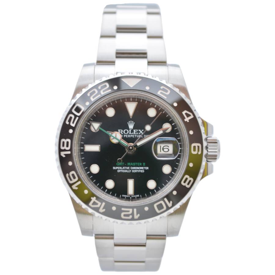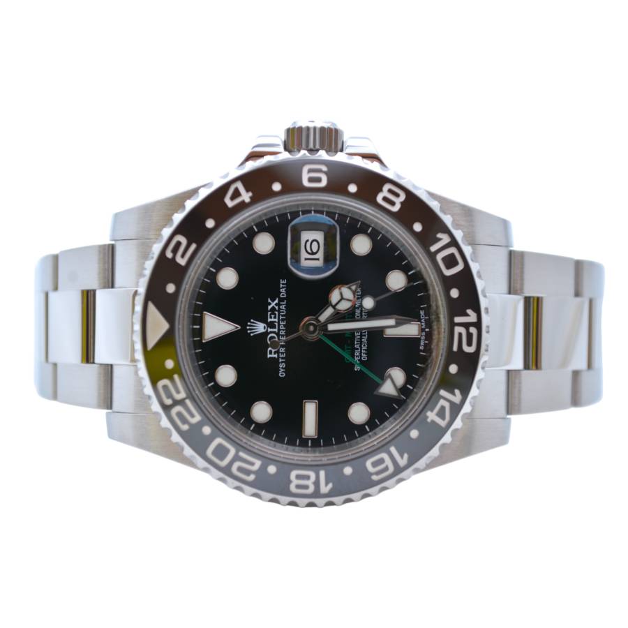 Rolex GMT-Master II Ref. 116710LN este o icoană atemporală - o expresie a preciziei, eleganței și spiritului global, creată pentru cei care se mișcă fără probleme între lumi. Creată de Rolex, această referință întruchipează legendara măiestrie a mărcii în materie de formă și funcționalitate. Carcasa sa Oystersteel de 40 mm oferă un echilibru perfect între robustețe și rafinament, lustruită până la o strălucire subtilă ce se simte la fel de bine sub o manșetă sau la încheietura unui călător experimentat.