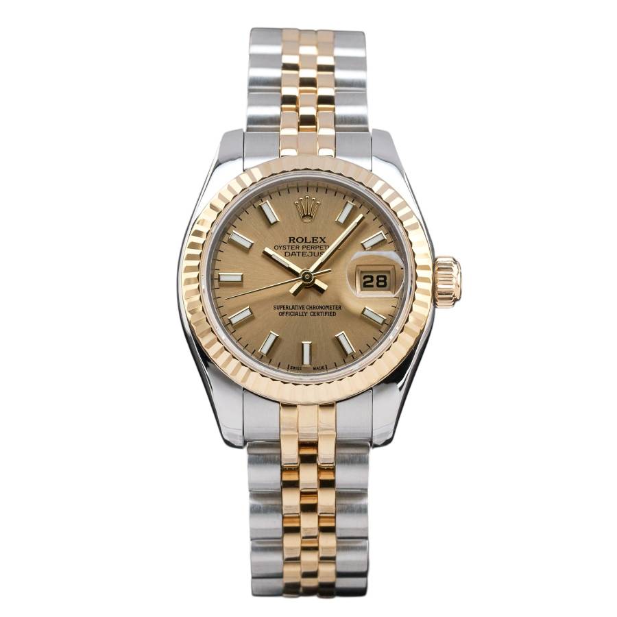 ROLEX LADY DATEJUST TWO-TONE YELLOW GOLD STEEL JUBILEE CHAMPAGNE DIAL FULL SET 2005 REF: 179173