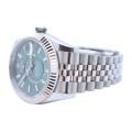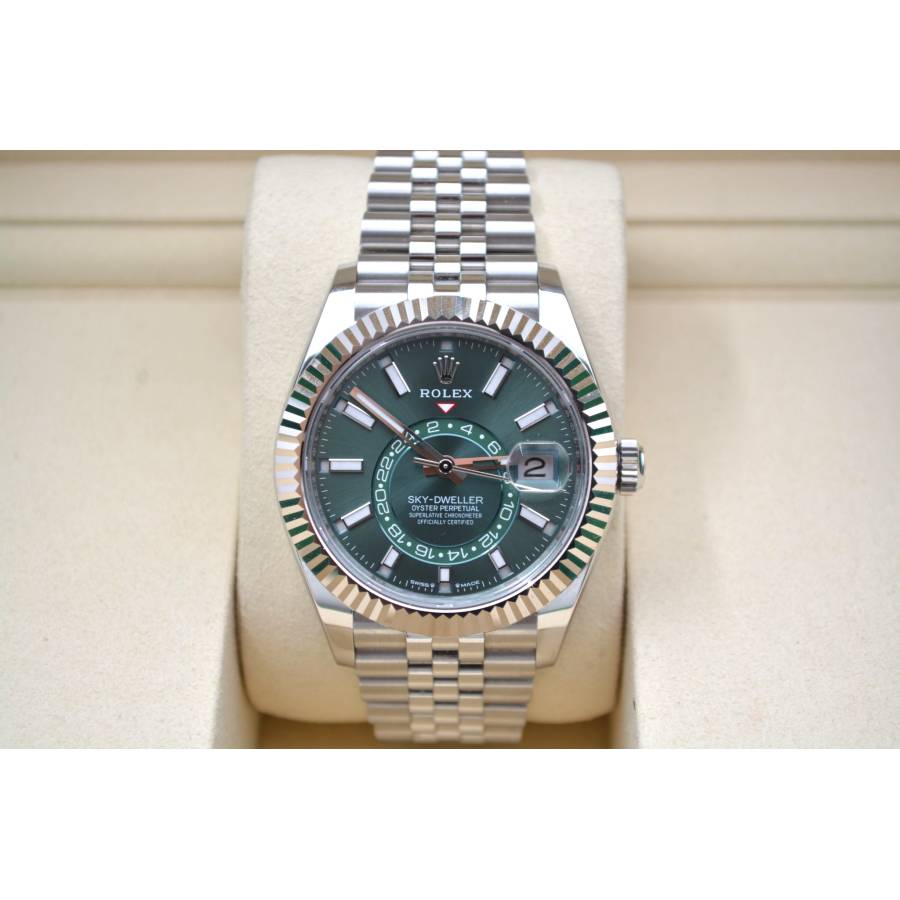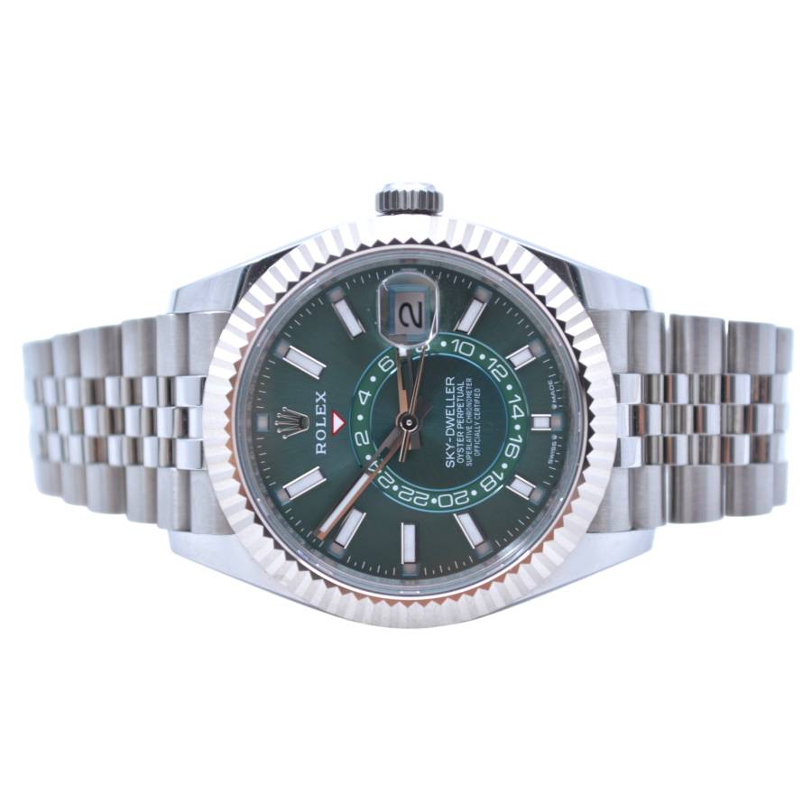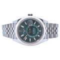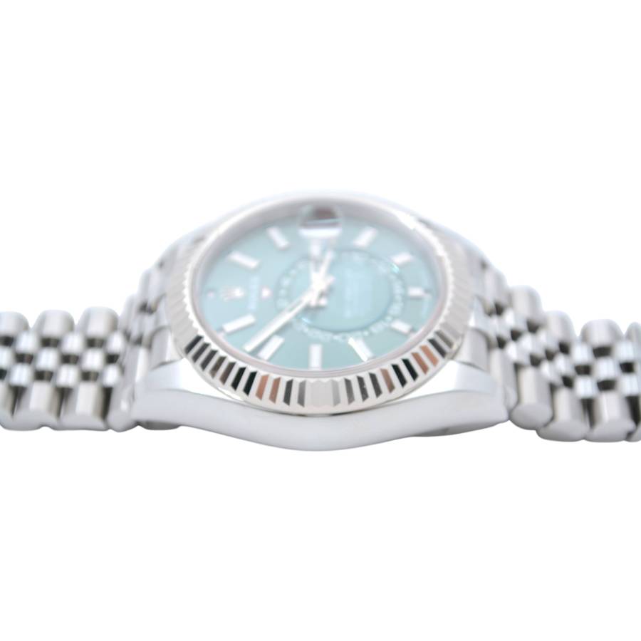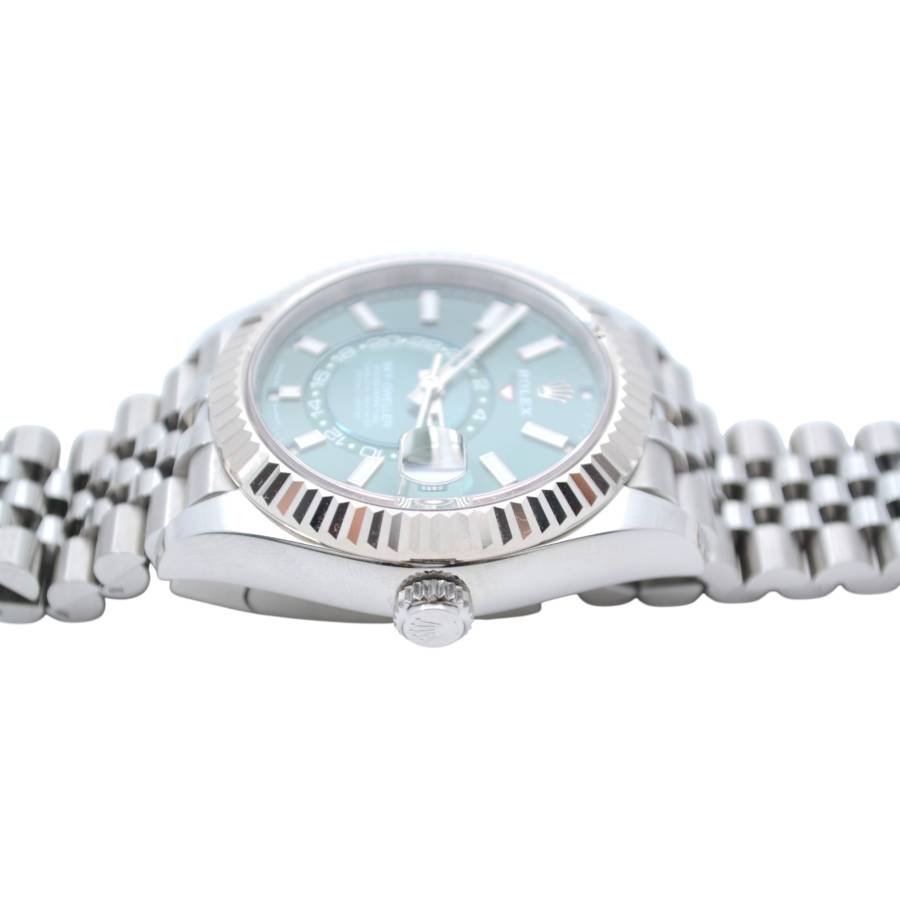 Rolex Sky-Dweller Ref. 336934 în verde mentă reprezintă locul unde prospețimea modernă întâlnește autoritatea atemporală - o expresie rară a eleganței, care se simte atât îndrăzneață, cât și rafinată fără efort. Cadranul său, scăldat într-un verde mentă moale, dar vibrant, surprinde lumina într-un mod care pare viu - subtil în nuanțe, dar inconfundabil de distinctiv. Este o culoare care evocă claritate, încredere și individualitate, diferențiind acest Sky-Dweller de obișnuit, fără a-și pierde vreodată calmul.